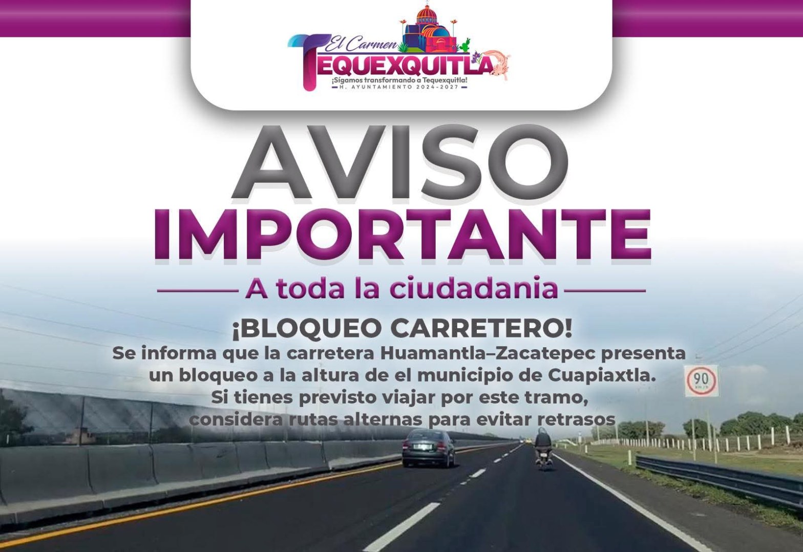 Debido a los bloqueos registrados en distintos tramos carreteros del país, se informa que la carretera México–Veracruz permanece cerrada a la altura del municipio de Cuapiaxtla, Tlaxcala.