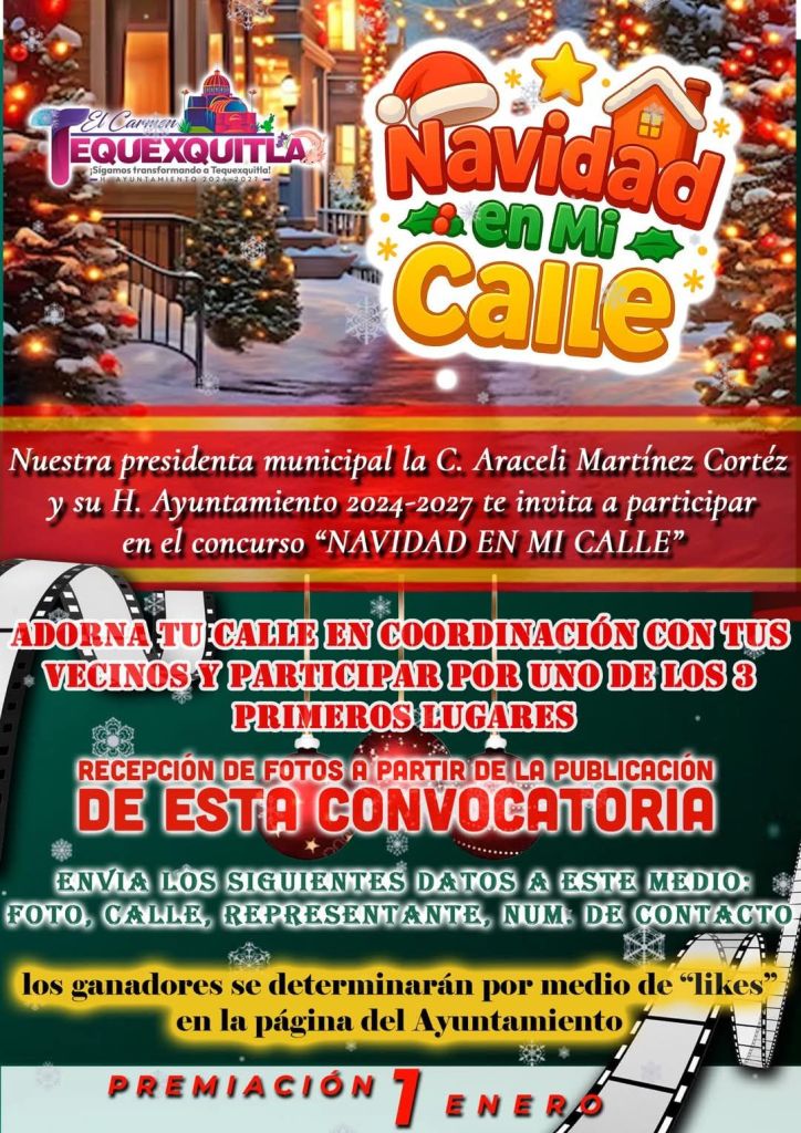 Los invitamos a participar en nuestro concurso “Navidad en mi Calle”, donde cada calle podrá demostrar su creatividad trabajando en equipo para crear el mejor ambiente navideño. 🎅🎁🌟