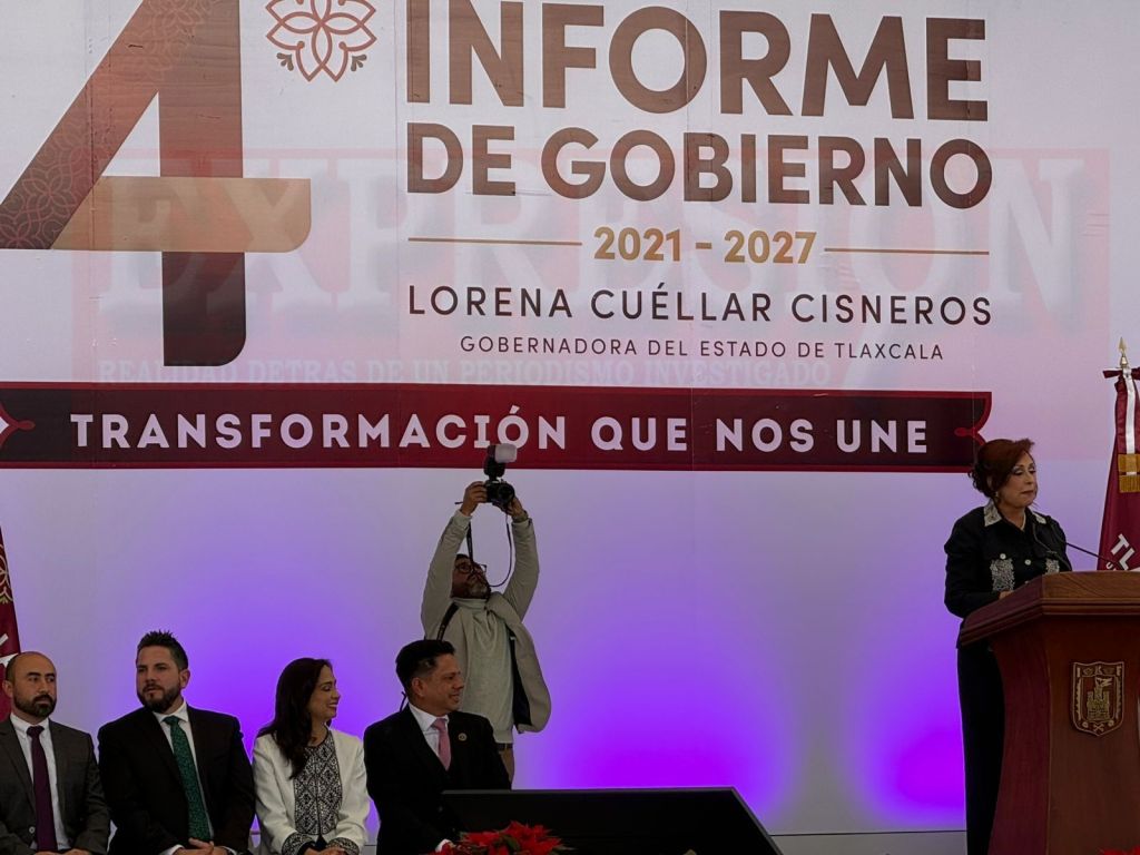 En un mensaje dirigido a los tlaxcaltecas, la gobernadora Lorena Cuéllar Cisneros presentó su Cuarto Informe de Gobierno, donde aseguró que Tlaxcala vive un momento histórico de transformación con avances significativos en seguridad, desarrollo social, salud, economía e infraestructura, además de mantener por cuarto año consecutivo cero deuda pública.