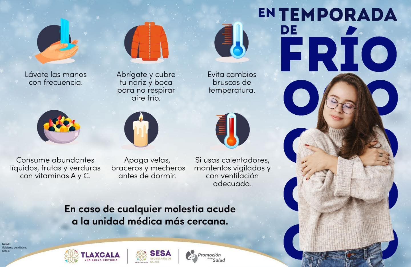 Ante cualquier molestia, acude a tu unidad médica más cercana. ❄️🧣