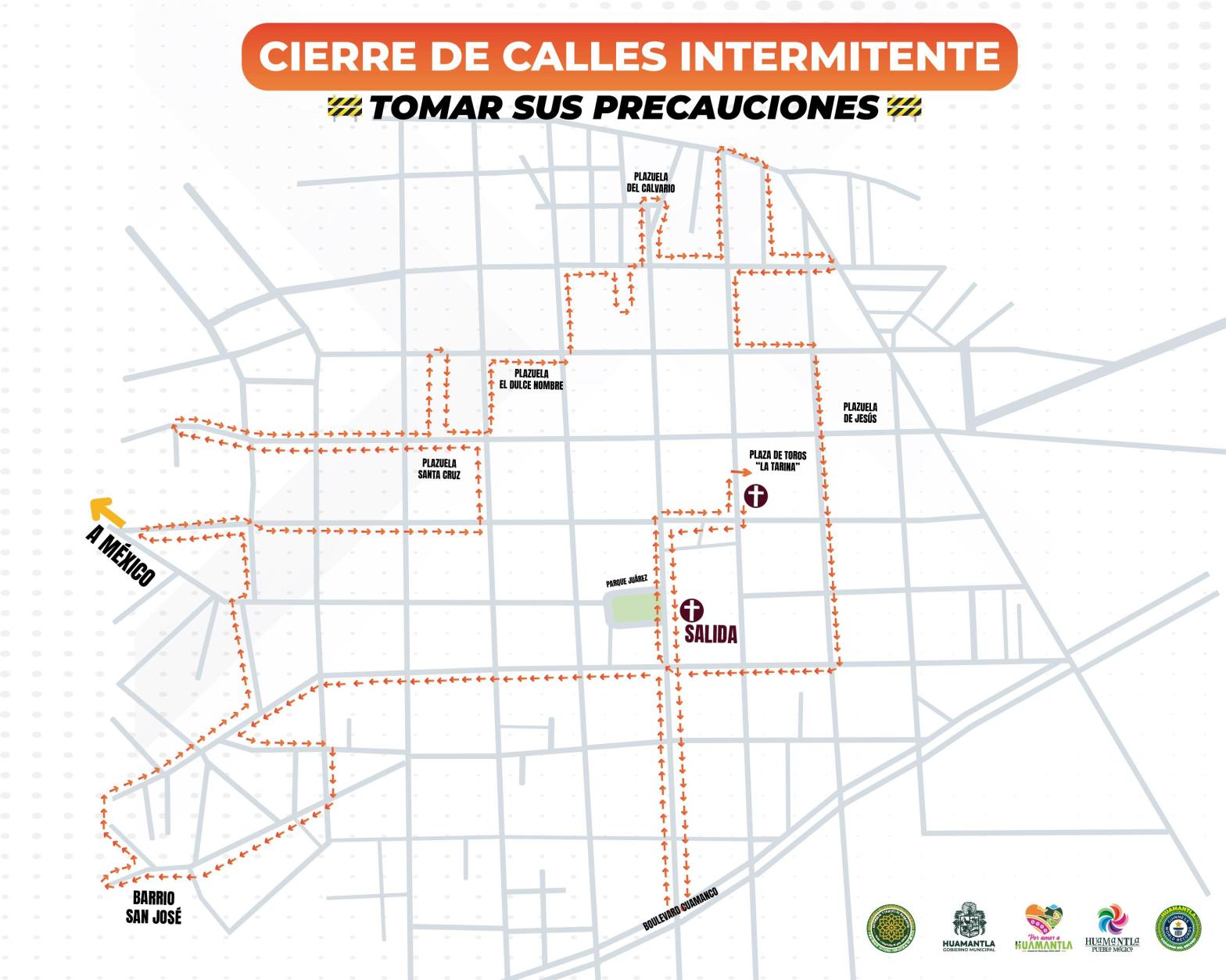 El Gobierno Municipal de Huamantla informa a la ciudadanía sobre el cierre de calles por la festividad en honor al Señor del Convento, una de las celebraciones religiosas más emblemáticas del municipio, que cada año reúne a miles de fieles y que se distingue por su extensa procesión, el arte efímero de los tapetes y el profundo arraigo cultural entre las familias huamantlecas.