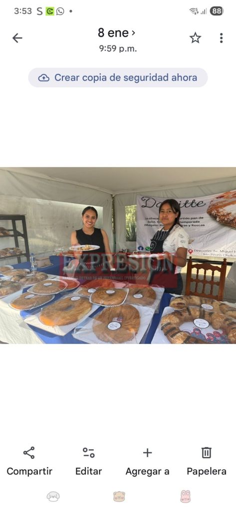 El propietario de la panadería “La Blanca”, Ángel, informó que en esta edición participan 28 tahoneros y expositores, quienes ofrecen una gran variedad de roscas que van desde las tradicionales hasta las rellenas, entre ellas de chocolate, queso con zarzamora y la clásica de crema de almendra, conservando recetas artesanales que distinguen a la región.