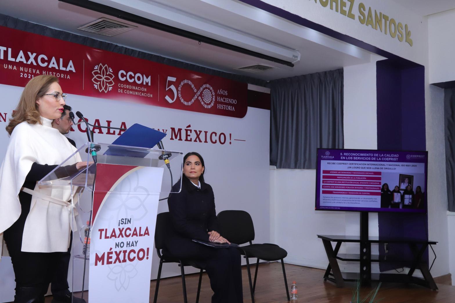 Al participar en el Diálogo Circular de este lunes, en el auditorio “Trinidad Sánchez Santos” de la Coordinación de Comunicación (CCOM) del Gobierno del Estado, la titular de la Coeprist, Mónica Yazmín Jiménez Gutiérrez, anticipó como la primera acción relevante del año la inauguración de las nuevas oficinas de la Comisión en Santa Ana Chiautempan, que contará con salas multidisciplinarias “para alinearnos a la estrategia de Buen Gobierno que está enfocada a cero actos de corrupción”.
