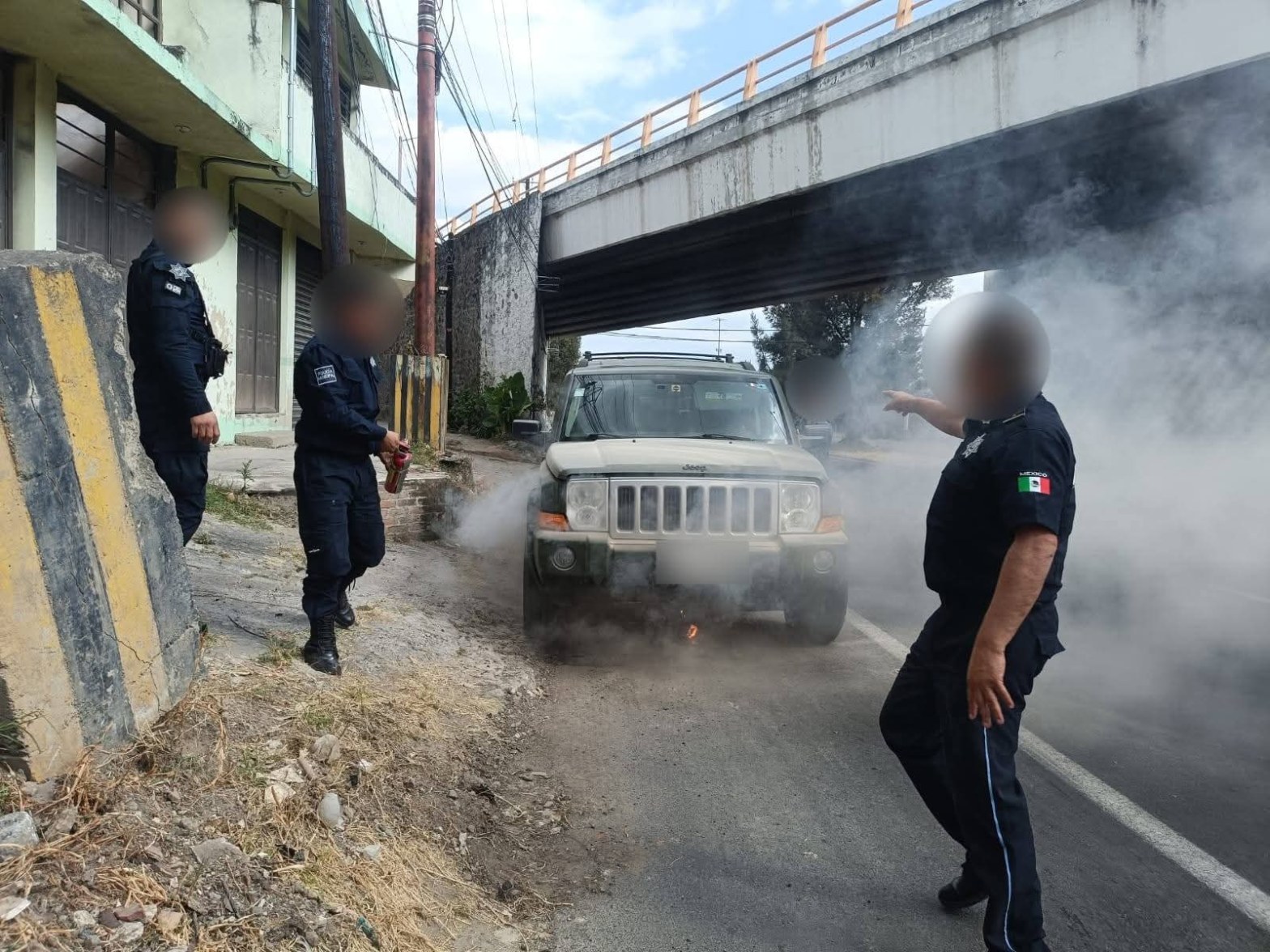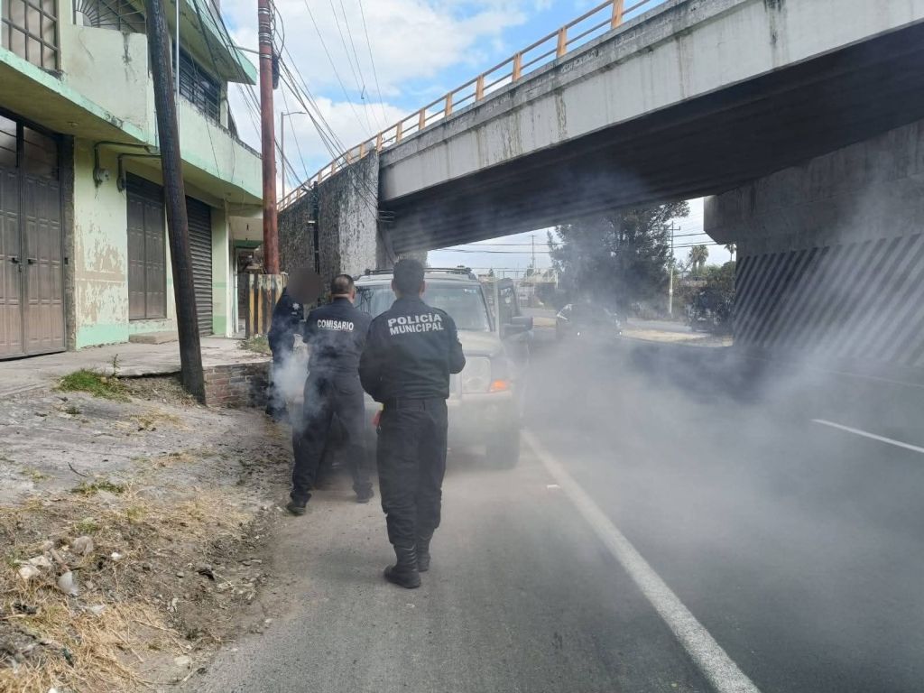 Elementos de la Dirección de Seguridad Pública Municipal auxiliaron a una mujer de la tercera edad y a una menor de edad, quienes se encontraban atrapadas dentro de una camioneta que comenzó a incendiarse mientras circulaban sobre la Autopista Tlaxcala-San Martín, a la altura del puente de Zaragoza.