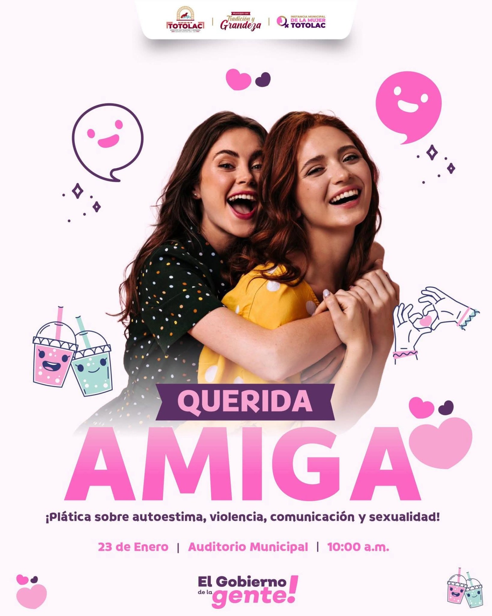 El Gobierno Municipal de Totolac 24-27 a través de la Instancia de la Mujer Totolac te invita a participar en la plática sobre autoestima, violencia, comunicación y sexualidad denominada «Querida amiga».