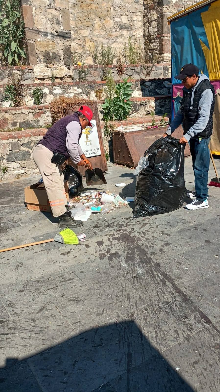 Después de los festejos patronales en la cabecera municipal, de manera coordinada 𝗿𝗲𝗮𝗹𝗶𝘇𝗮𝗻 𝗹𝗮𝗯𝗼𝗿𝗲𝘀 𝗱𝗲 𝗹𝗶𝗺𝗽𝗶𝗲𝘇𝗮 𝗽𝗮𝗿𝗮 𝗿𝗲𝘁𝗶𝗿𝗮𝗿 𝗹𝗼𝘀 𝗱𝗲𝘀𝗲𝗰𝗵𝗼𝘀 𝗴𝗲𝗻𝗲𝗿𝗮𝗱𝗼𝘀 durante las actividades, el único objetivo, garantizar el destino correcto de la basura, dignificar los espacios públicos y garantizar espacios decorosos a la ciudadanía.