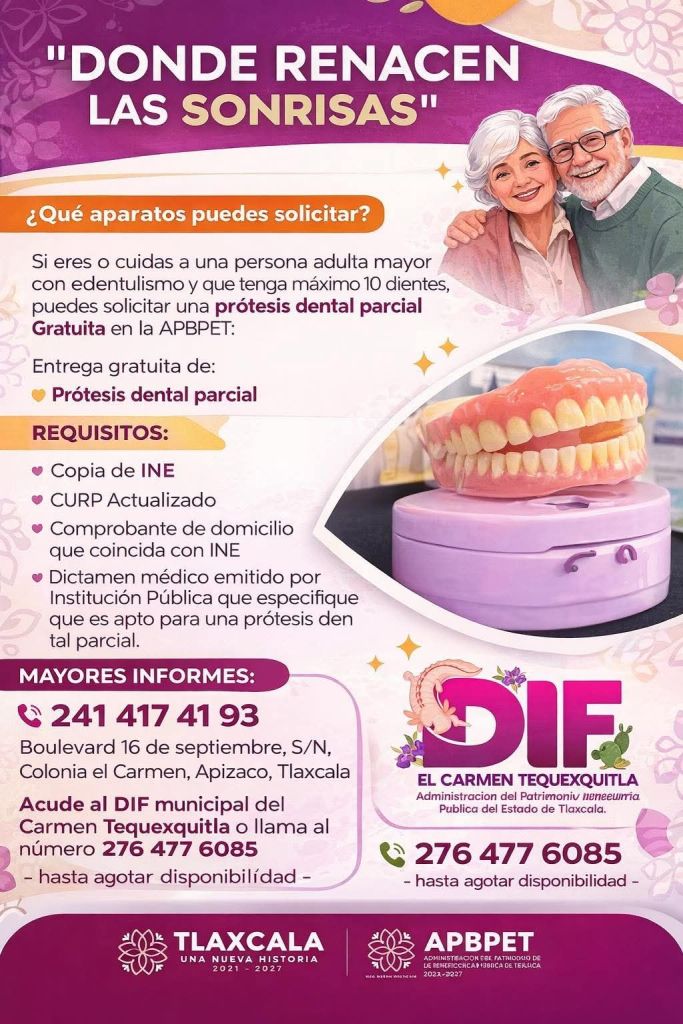 El Sistema Municipal DIF de El Carmen Tequexquitla, en coordinación con la Beneficencia Pública del Estado de Tlaxcala (APBPET), invita a la población a participar en el programa “Donde Renacen las Sonrisas”.