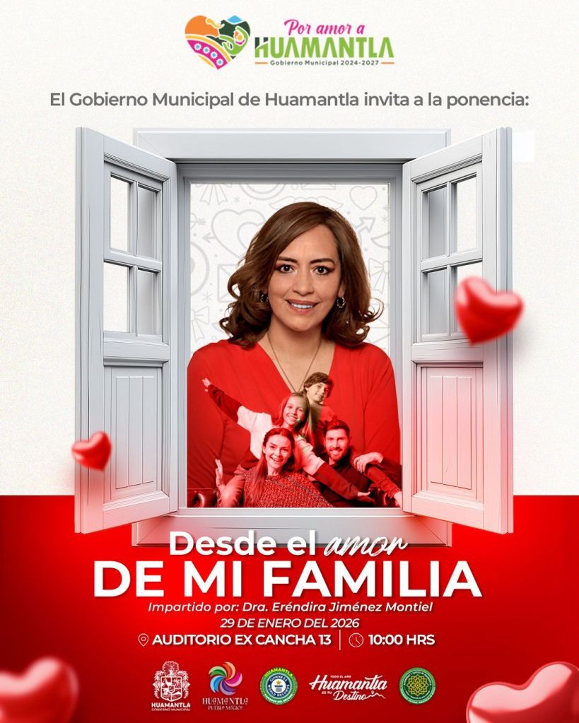 Con el objetivo de fortalecer los lazos familiares y promover una cultura de respeto, cuidado y bienestar dentro del hogar, el Gobierno Municipal de Huamantla, a través de la Dirección de Bienestar Municipal, invita a la ciudadanía a participar en la ponencia “Desde el amor de mi familia”, impartida por la Dra. Eréndira Jiménez Montiel, reconocida activista en favor de los derechos humanos.