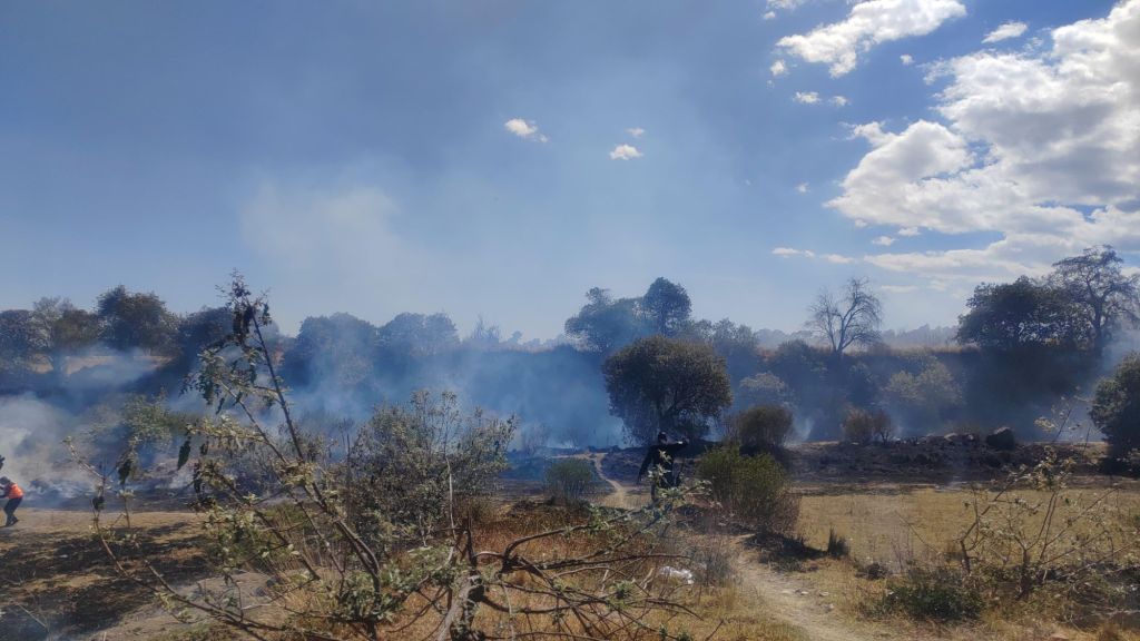 Elementos de Protección Civil de Huamantla controlan incendio de pastizales en el Pueblo de Jesús y exhortan a evitar quemas