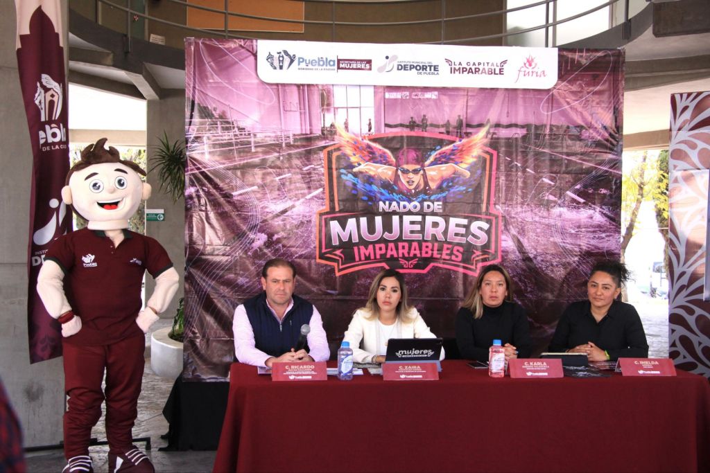 Puebla, Pue., 04 febrero de 2026.— En el marco del Día Internacional de la Mujer, el Instituto Municipal del Deporte de Puebla (IMDP), la Secretaría de las Mujeres y Furia México presentaron el evento deportivo “Nado de Mujeres Imparables”, iniciativa que busca promover la actividad física, la salud, el empoderamiento femenino y la igualdad de género mediante la natación.