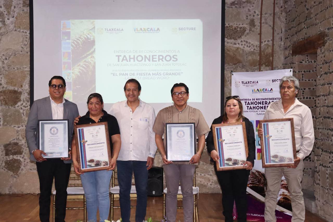 El Secretario de Turismo, 𝗙𝗮𝗯𝗿𝗶𝗰𝗶𝗼 𝗠𝗲𝗻𝗮 𝗥𝗼𝗱𝗿í𝗴𝘂𝗲𝘇, entregó reconocimientos a los municipios de Totolac y San Juan Huactzinco por su 𝗱𝗲𝘀𝘁𝗮𝗰𝗮𝗱𝗮 𝗽𝗮𝗿𝘁𝗶𝗰𝗶𝗽𝗮𝗰𝗶ó𝗻 𝗲𝗻 𝗲𝗹 𝗥é𝗰𝗼𝗿𝗱 𝗚𝘂𝗶𝗻𝗻𝗲𝘀𝘀 de las letras más grandes hechas con pan de fiesta, una hazaña que resalta la tradición panadera tlaxcalteca a nivel mundial.