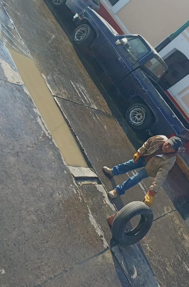 Durante las labores se detectó un tapón de grasa y desechos, por lo que personal de CAPAMH trabaja en su retiro para restablecer el correcto funcionamiento del drenaje.