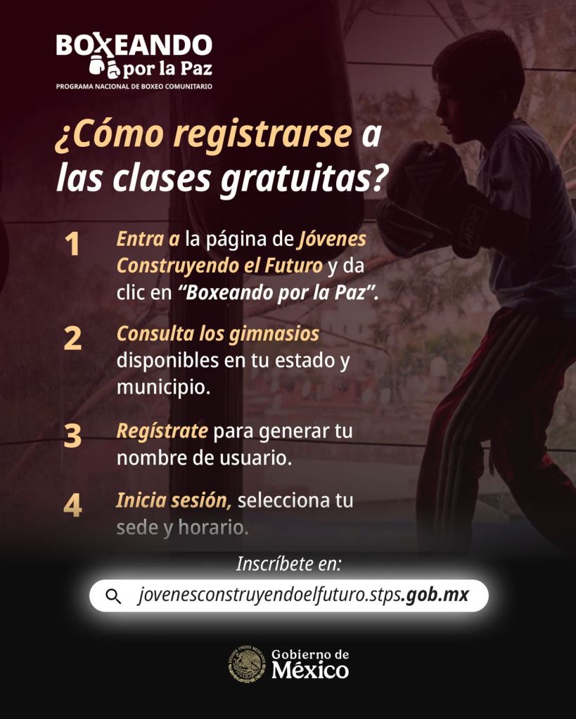Boxeando por la Paz, una estrategia nacional que integra a 5 mil boxeadores y boxeadoras profesionales a Jóvenes Construyendo el Futuro, ofrecerá clases gratuitas de box a 100 mil niñas, niños y jóvenes.