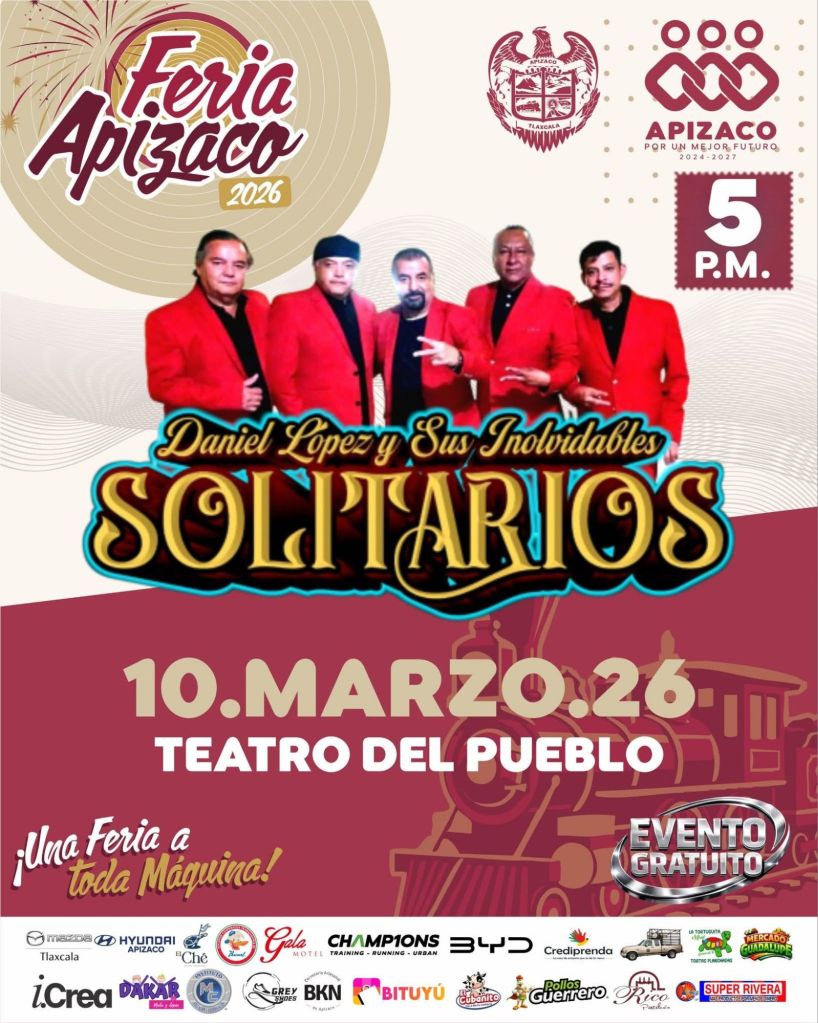 Daniel López y sus Inolvidables Solitarios, Tributo Indio y La Tropa Loca llegarán este martes para poner el gran ambiente en la Feria de Apizaco 2026.