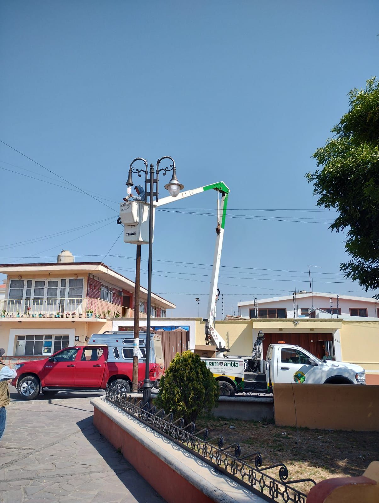 Brigadas “Huamantla Brilla Más” atienden reportes de luminarias en la Plazuela de Jesús