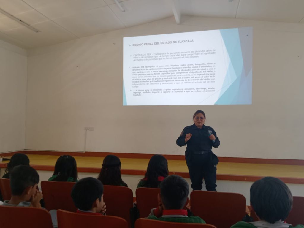 Huamantla, Tlaxcala.– Como parte de las estrategias de proximidad social y prevención del delito, la Dirección de Seguridad Pública, Tránsito y Protección Civil de Huamantla llevó a cabo una serie de actividades en instituciones educativas del municipio, con el objetivo de fortalecer la cultura de la legalidad y la prevención entre la niñez y juventud.