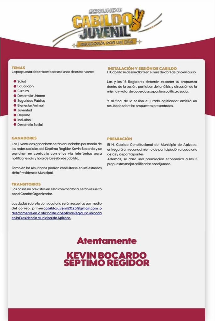El Ayuntamiento de Apizaco te invita a formar parte de esta gran experiencia democrática: Regidor/a por un día 👩💼🧑💼