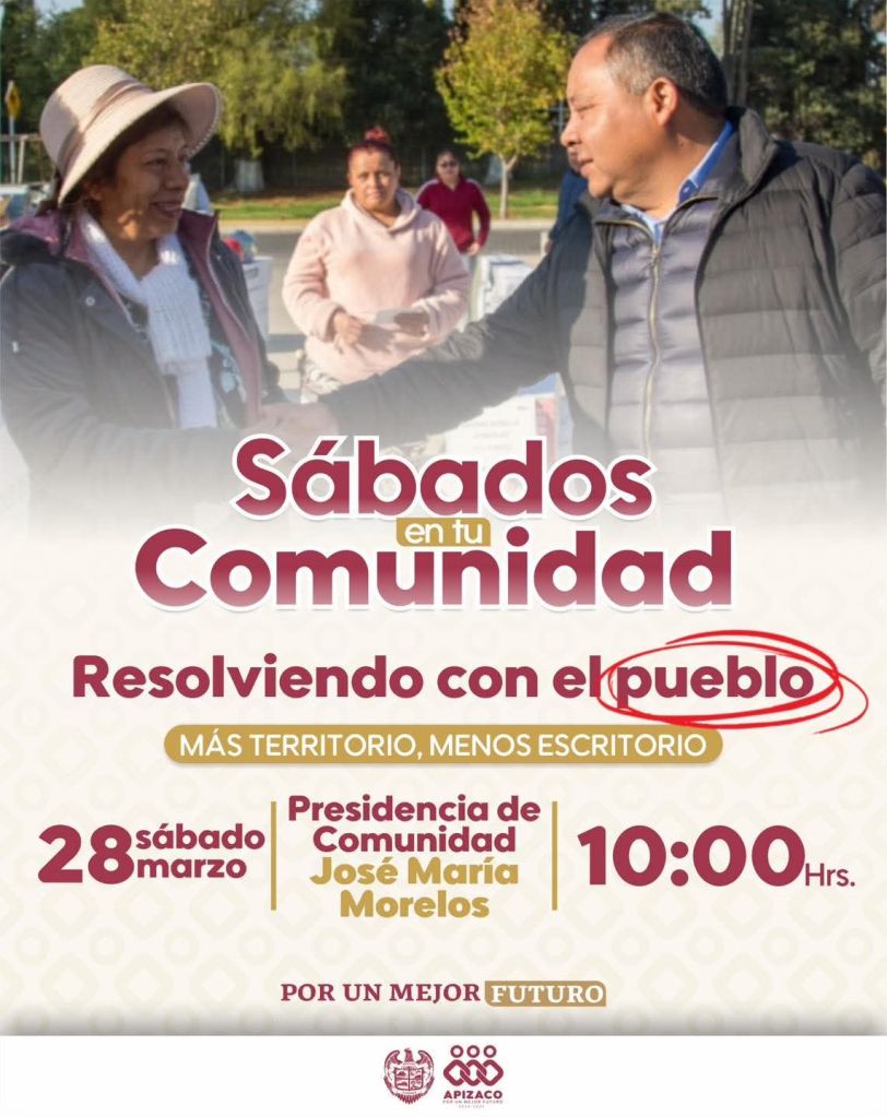 Por eso quiero invitarte a que nos acompañes en “Sábados en tu Comunidad, resolviendo con el pueblo”.