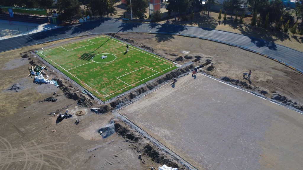 Gracias al trabajo coordinado entre los distintos órdenes de gobierno, se logró la autorización de dos canchas de fútbol 5 para Huamantla, proyecto que contempla además la optimización del espacio deportivo con el ajuste en la ubicación de la cancha de fútbol soccer, así como la conservación de la pista de tartán, la cual no será modificada en su estructura.