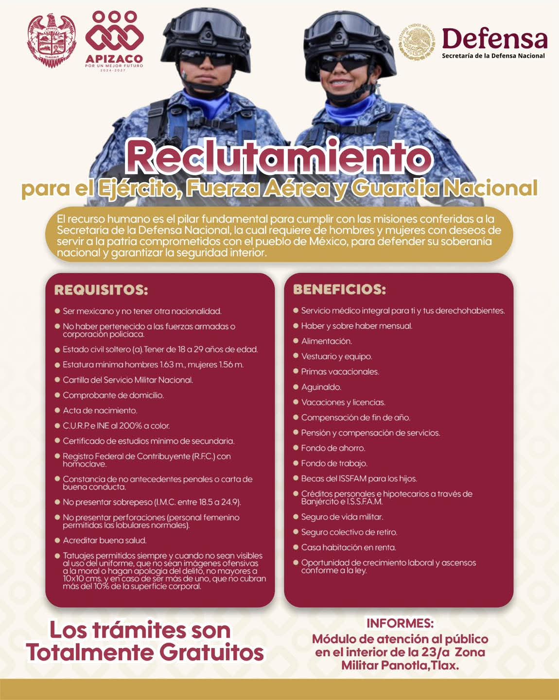 📍 Infórmate en el módulo de atención en la 23/a Zona Militar en Panotla, Tlax.