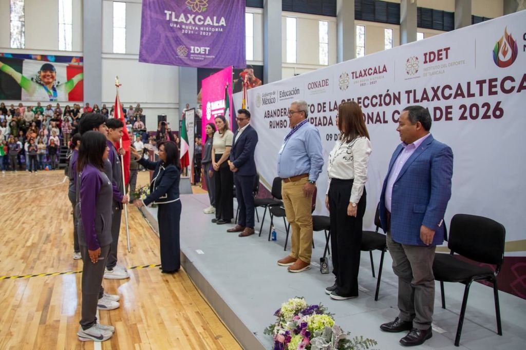 Fue un honor acompañar a nuestra gobernadora, Lorena Cuéllar en el abanderamiento de la Selección Tlaxcalteca que participará en la Olimpiada Nacional CONADE 2026, donde nuestro estado será orgullosamente sede.