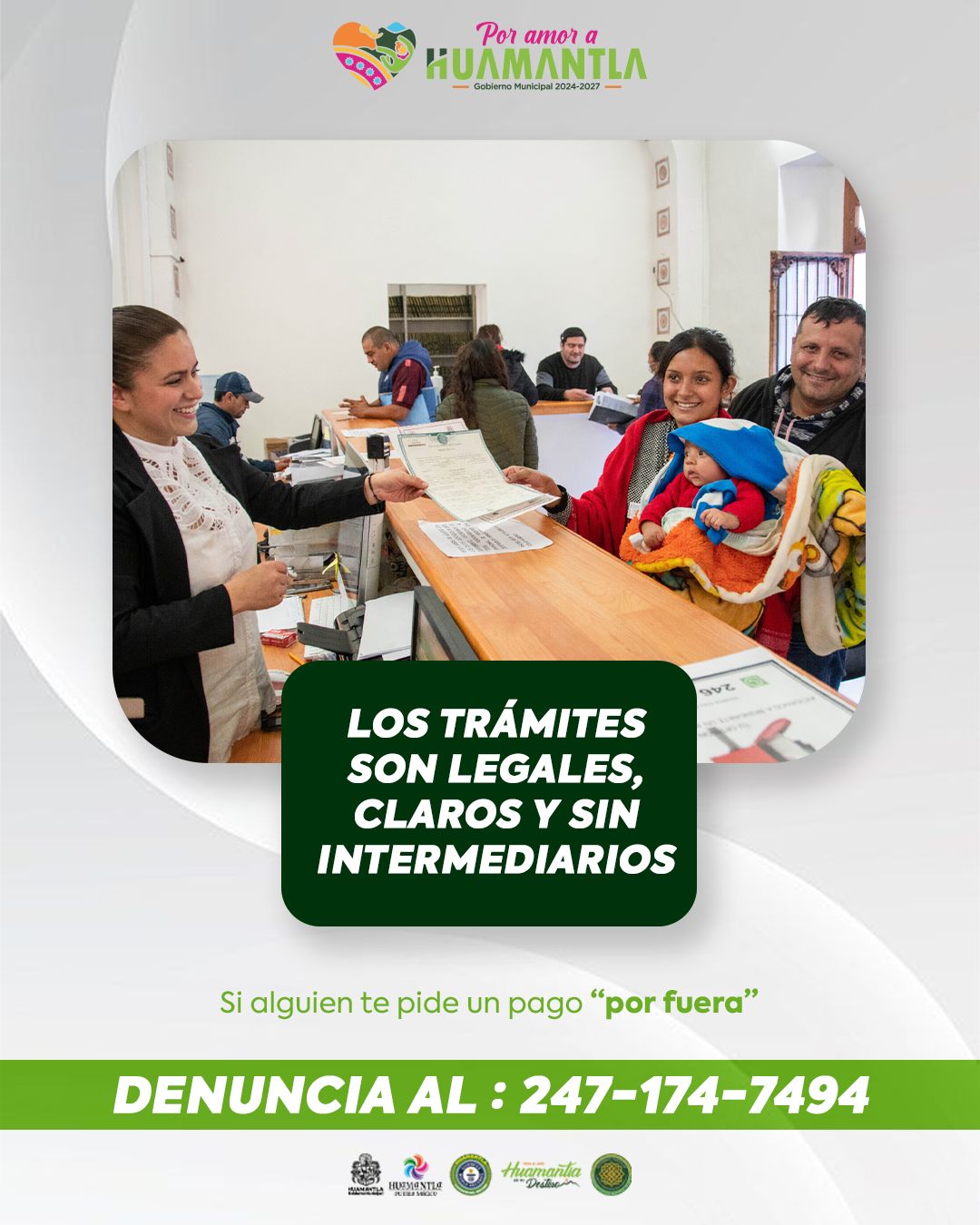 El Gobierno Municipal de Huamantla reafirma su compromiso con la transparencia y la legalidad, al señalar que todos los trámites y servicios se realizan de manera directa, clara y sin intermediarios, por lo que ningún servidor público está autorizado para solicitar pagos indebidos, dádivas o “moches”.