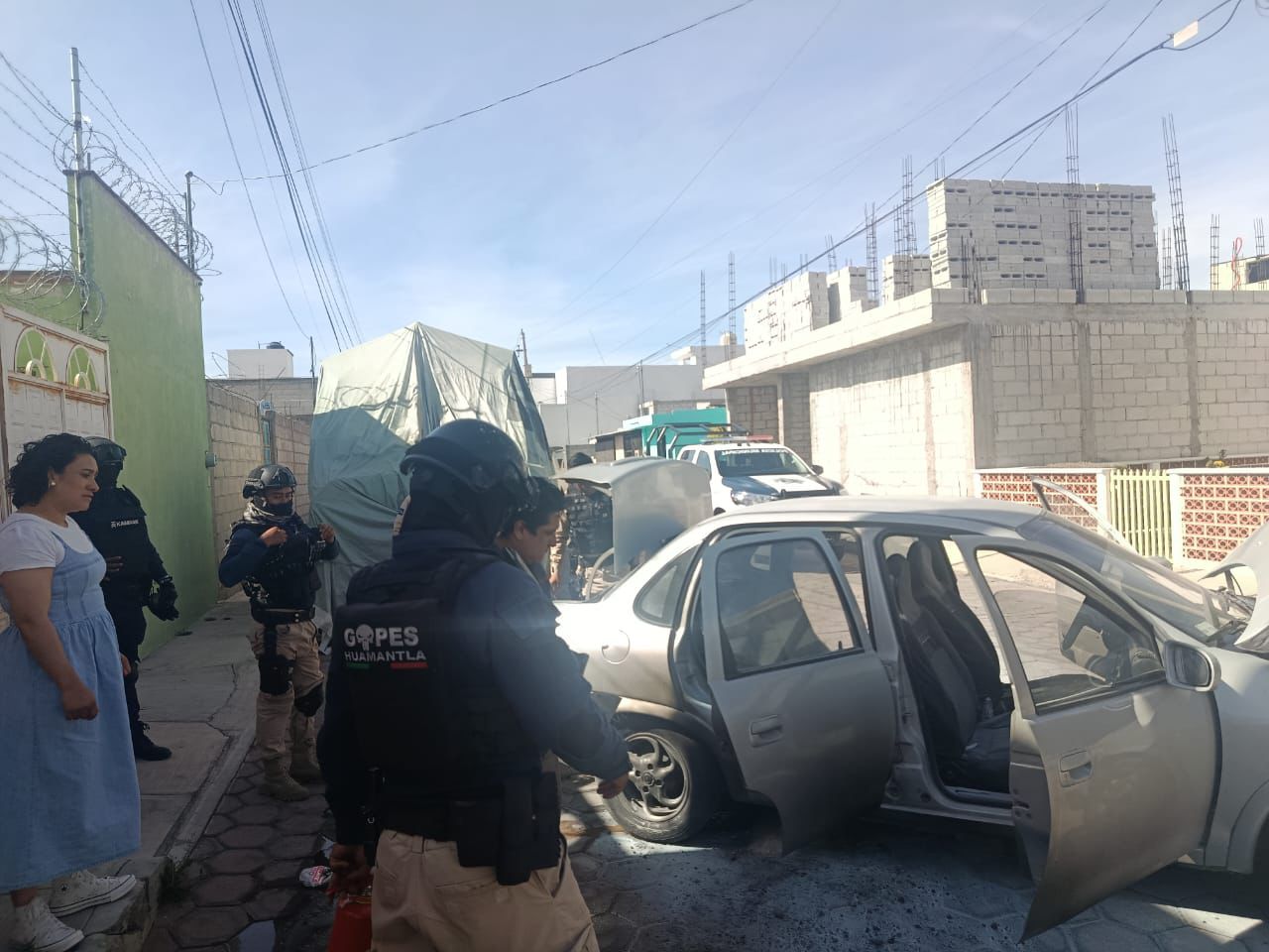 La Dirección de Seguridad Pública, Tránsito y Protección Civil de Huamantla informa que, la tarde de este sábado, se atendió el reporte de un automóvil en llamas en la calle San Miguel, del fraccionamiento San Carlos.