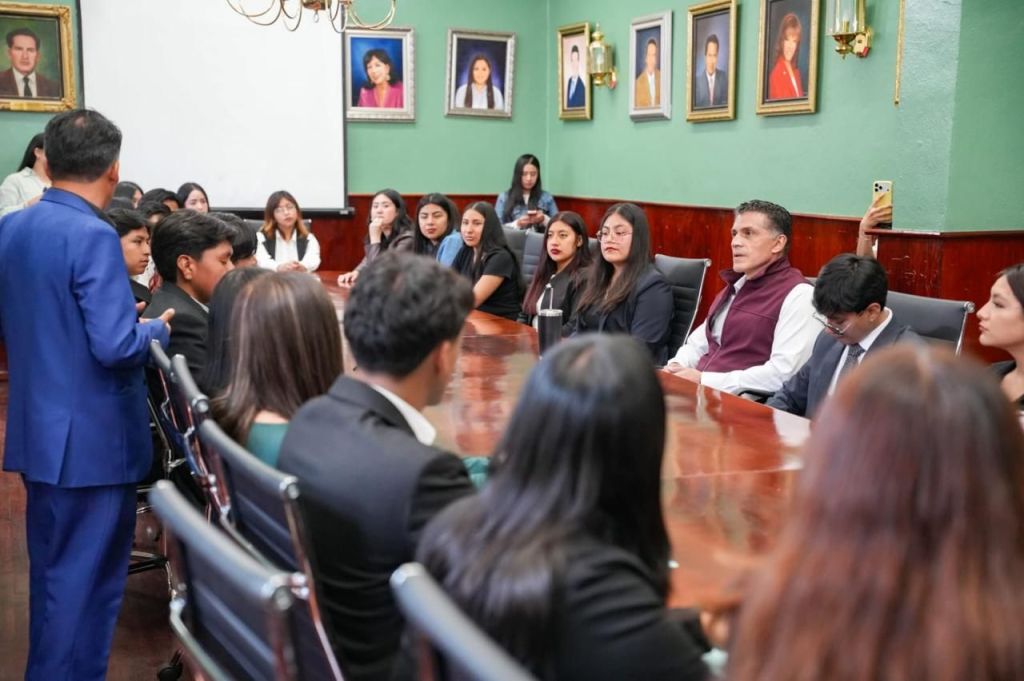 El presidente municipal de Tlaxcala, Alfonso Sánchez García, recibió en el Ayuntamiento a estudiantes de Ciencias Políticas y Administración Pública de la UATx, quienes realizaron una visita como parte de sus actividades académicas. Durante el encuentro, el alcalde sostuvo un diálogo cercano y abierto con las y los jóvenes, a quienes expresó que en su administración siempre encontrarán las puertas abiertas para escuchar sus ideas, inquietudes y propuestas. En respuesta, las y los estudiantes reconocieron y valoraron la disposición del presidente Alfonso Sánchez para mantener este acercamiento directo y cercano con la juventud.