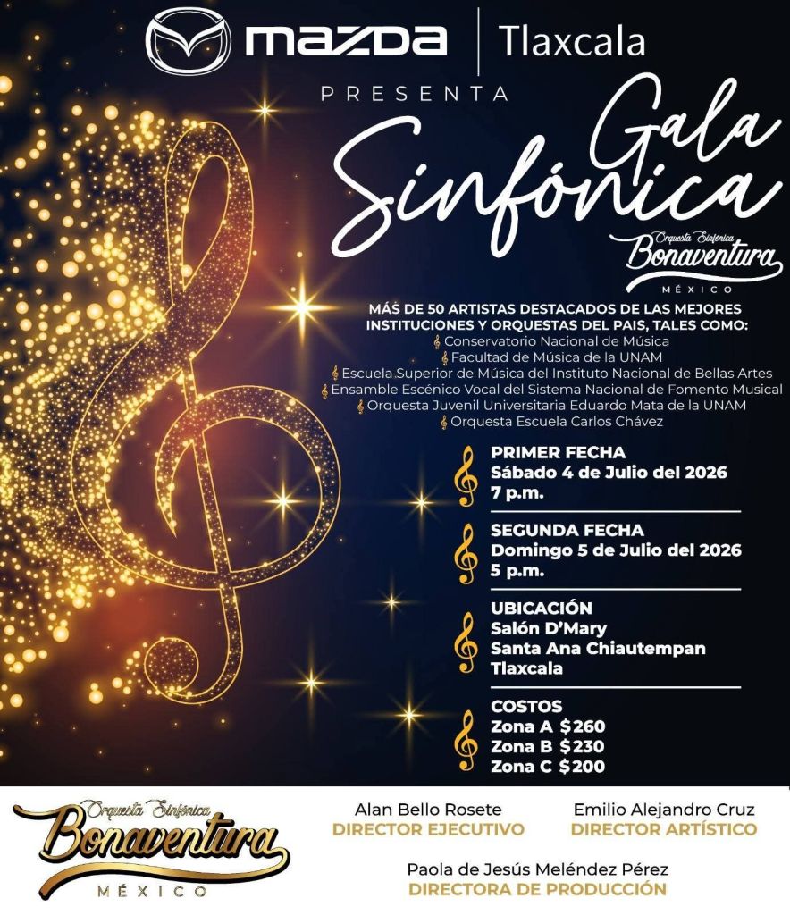 Con un ambiente lleno de expectativa, fue presentada la Gala Sinfónica de la Orquesta Sinfónica Bonaventura México durante una rueda de prensa realizada en Mazda Tlaxcala, uno de los principales patrocinadores del evento.