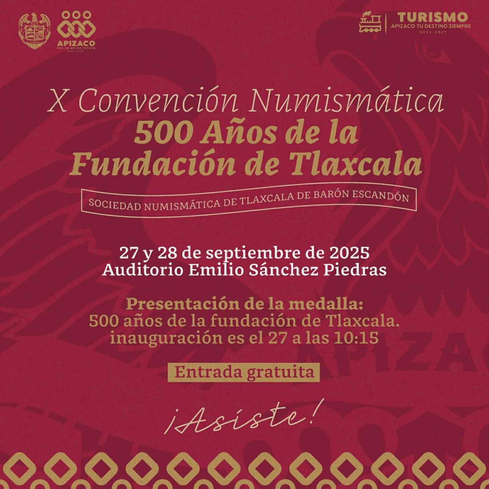 22 DE SEPTIEMBRE 2025 🎉 ¡Apizaco te invita a vivir la X Convención Numismática! 🪙 En el marco de los 500 Años de la Fundación de Tlaxcala 🎊, acompáñanos este 27 y 28 de septiembre de 2025 📅 en el Auditorio Emilio Sánchez Piedras. Un espacio cultural e histórico 📚 organizado por la Sociedad NumismáticaSigue leyendo «APIZACO TE INVITA A VIVIR LA X CONVENCION NUMISMATICA»