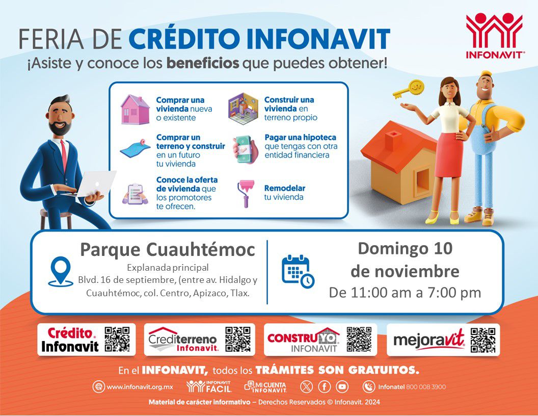 8 DE NOVIEMBRE 2024 Feria de crédito INFONAVIT. El Gobierno Municipal de Apizaco y el Instituto del Fondo Nacional de la Vivienda para los Trabajadores (Infonavit) invitan a las y los derechohabientes a participar en la próxima Feria de Crédito, donde podrán conocer y acceder a diversas opciones de financiamiento para mejorar o adquirir suSigue leyendo «FERIA DE CREDITO INFONAVIT EN APIZACO»