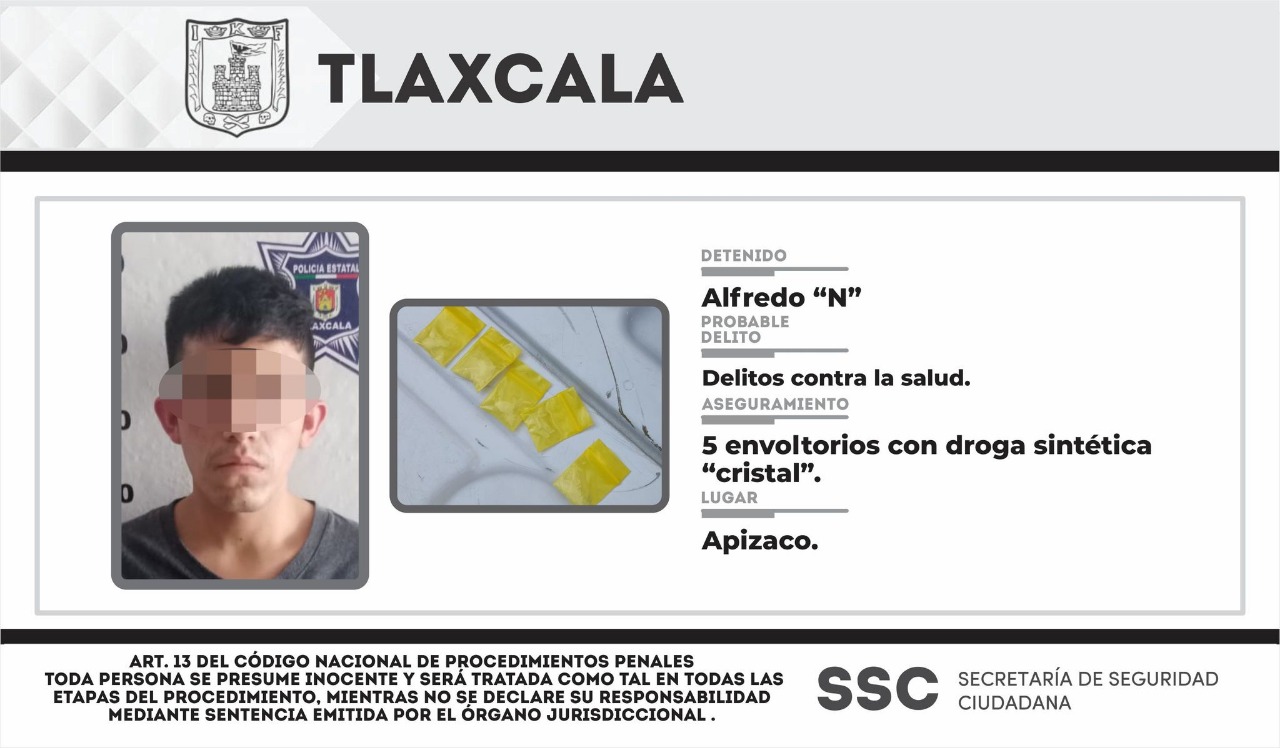 SSC DETUVO EN APIZACO A PRESUNTO RESPONSABLE DE DELITOS CONTRA LA SALUD