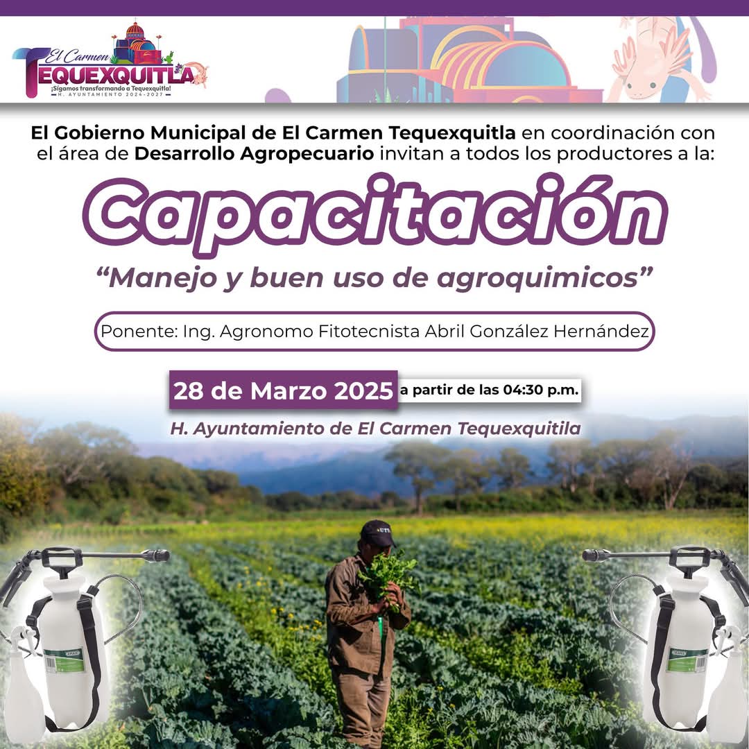 ATENCION PRODUCTORES Y AGRICULTORES MAÑANA SE EFECTUARÁ CAPACITACIÓN EN TEQUEXQUITLA