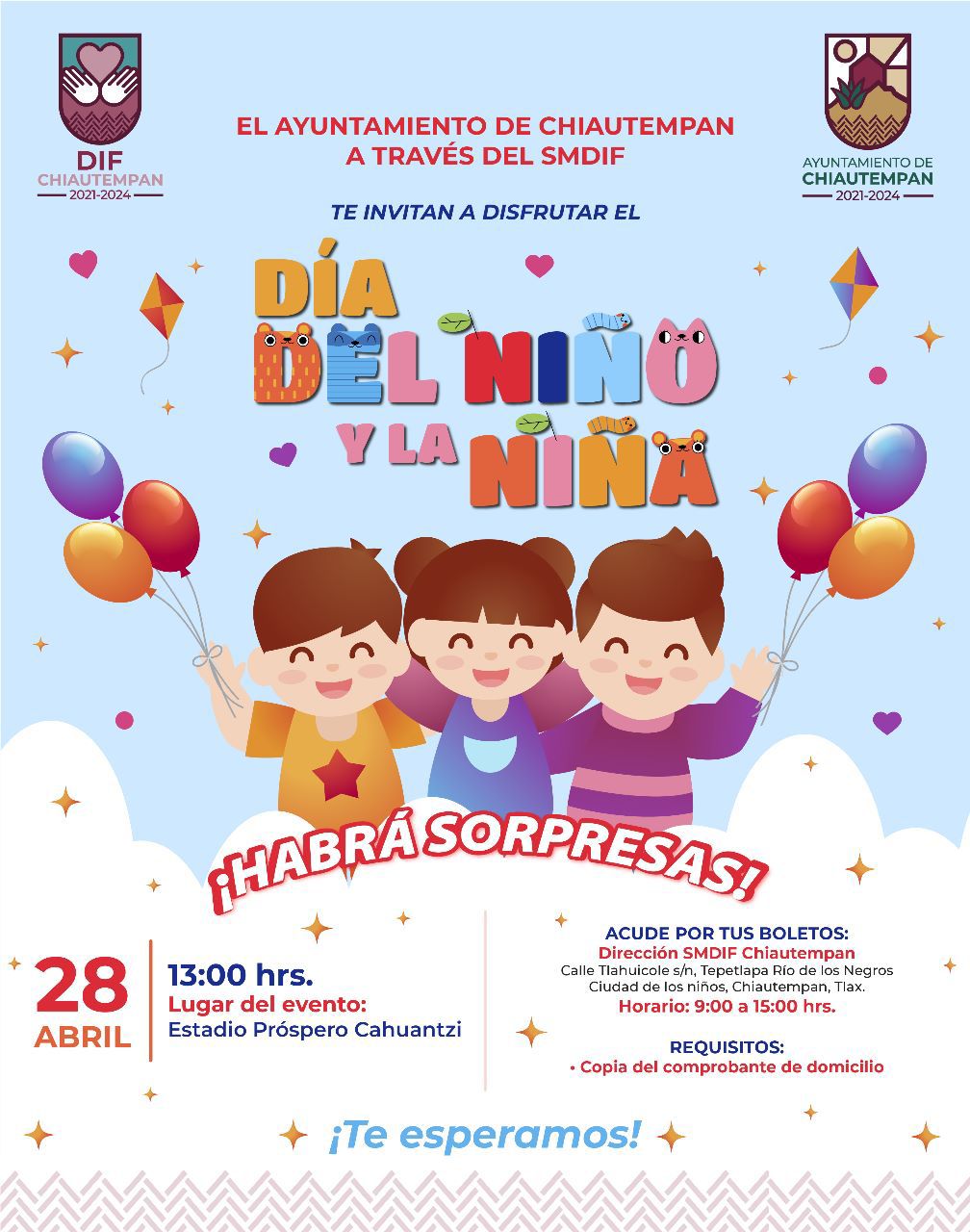 INVITA AYUNTAMIENTO DE CHIAUTEMPAN A CELEBRAR EL DIA DEL NIÑO Y LA NIÑA
