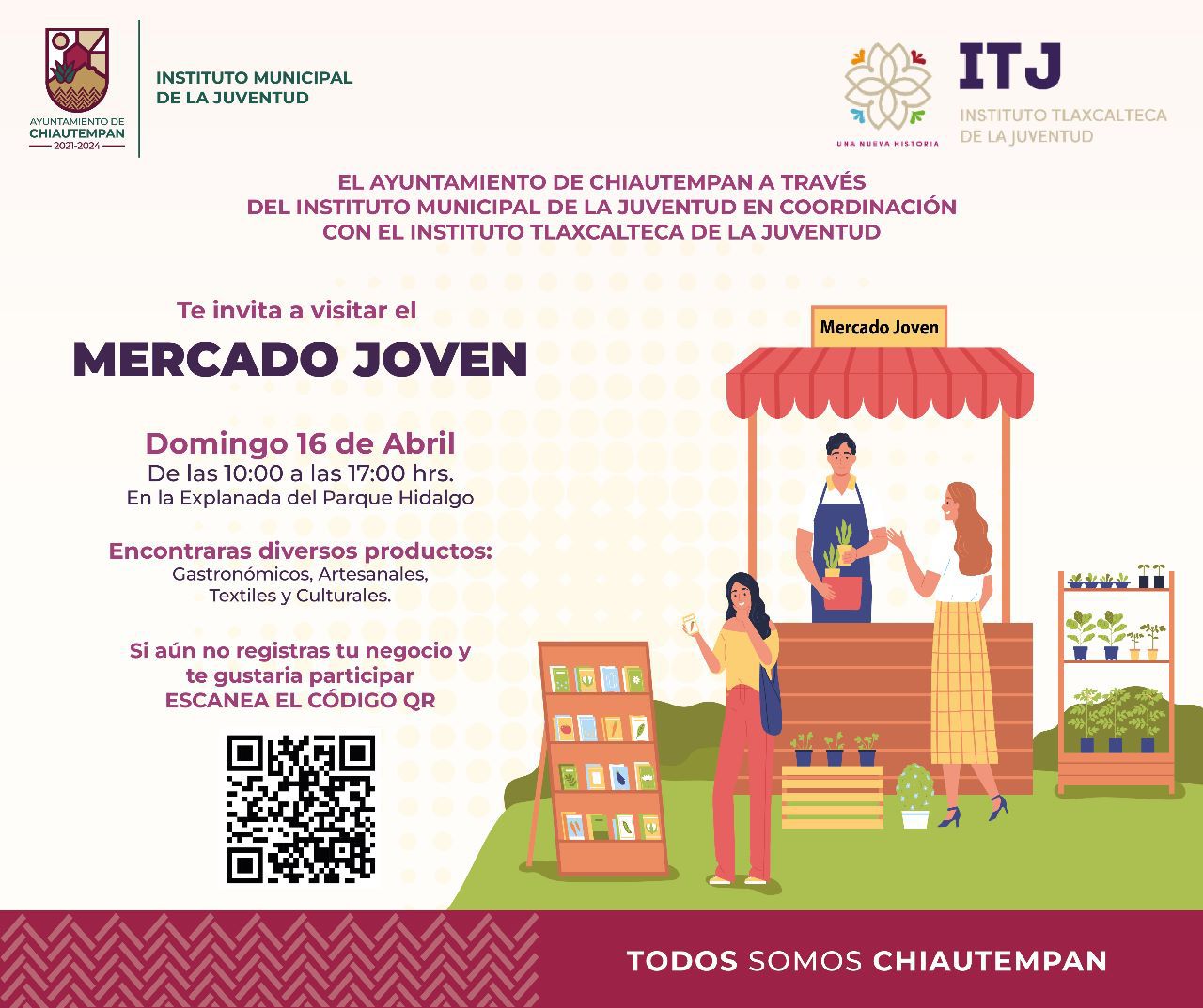 INVITA AYUNTAMIENTO DE CHIAUTEMPAN E ITJ A PARTICIPAR Y ACUDIR AL «MERCADO JOVEN»