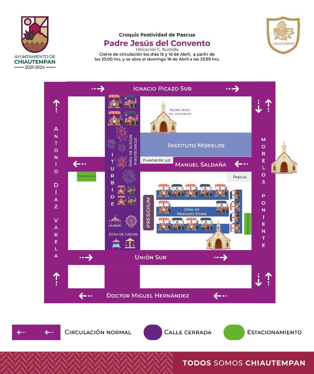 ANUNCIA AYUNTAMIENTO DE CHIAUTEMPAN CIERRE DE VIALIDAD POR PASCUA DE PADRE JESUS DEL CONVENTO