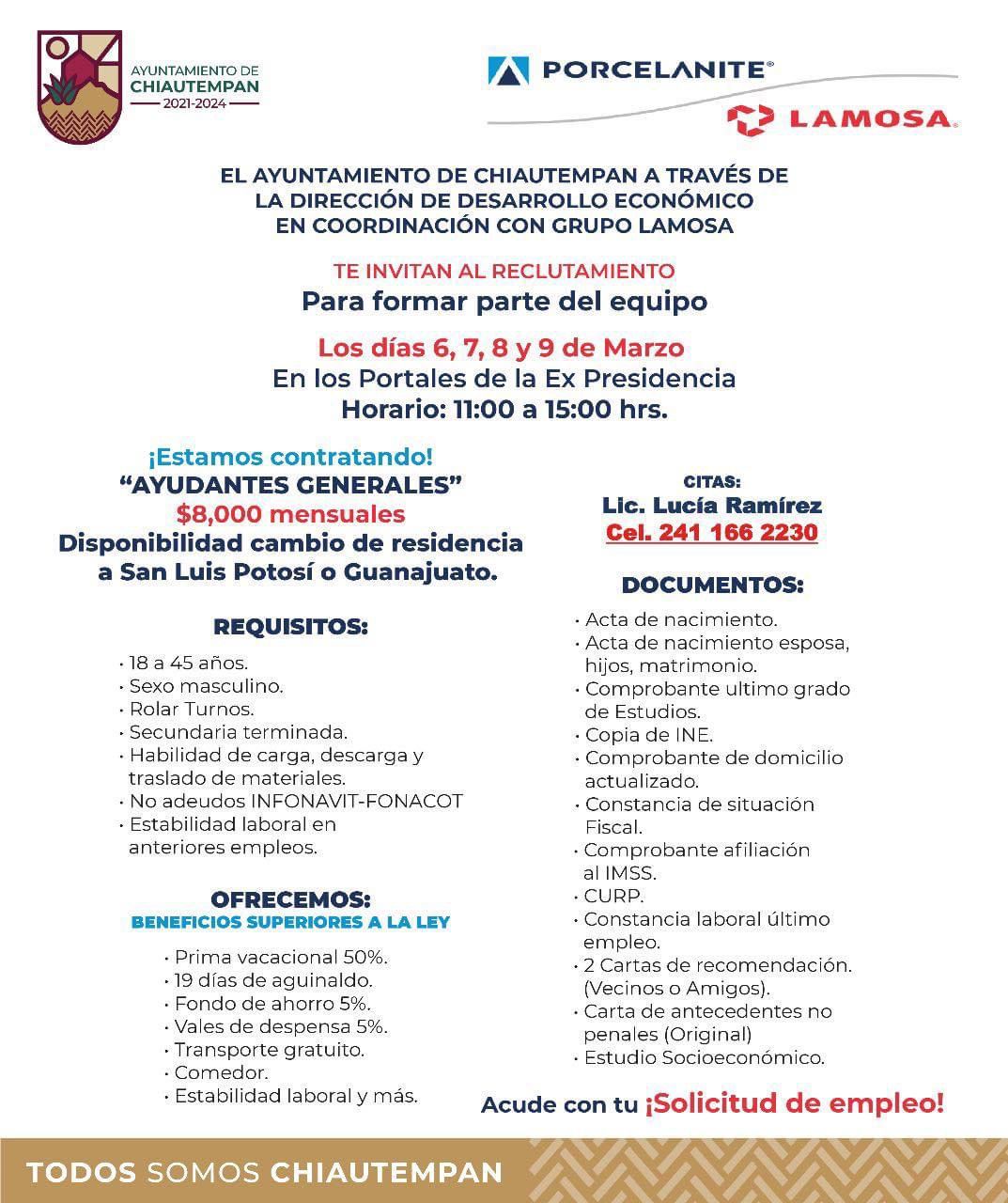 INICIA ATUNTAMIENTO DE CHIAUTEMPAN EL RECLUTAMIENTO PARA VACANTES LABORALES EN SAN LUIS POTOSI Y GUANAJUATO