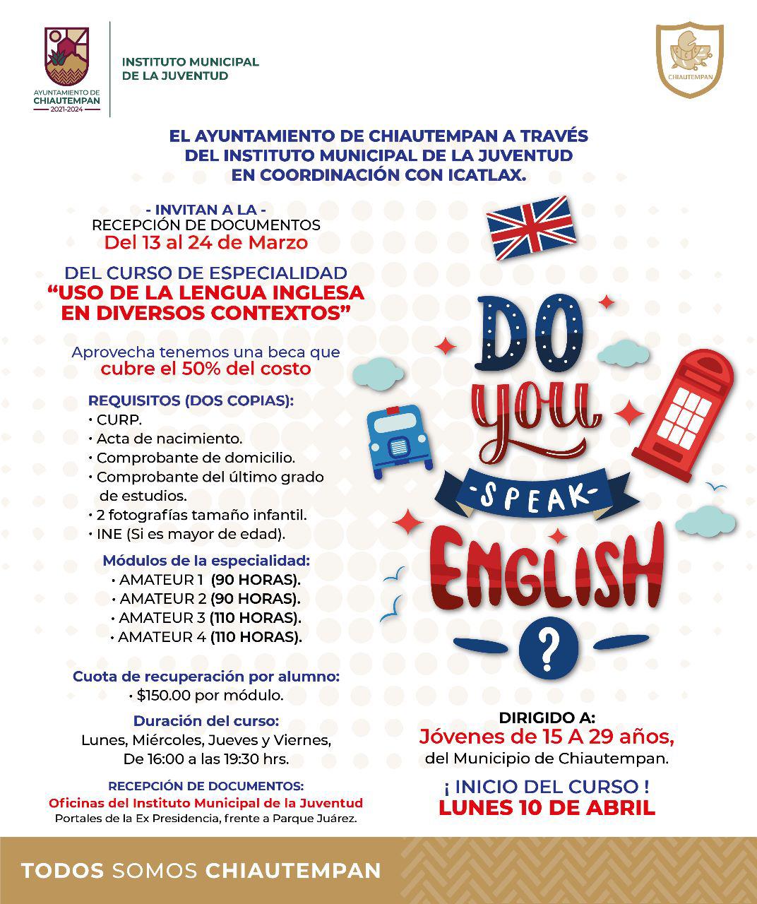 INVITAN EN CHIAUTEMPAN AL CURSO «USO DE LA LENGUA INGLESA EN DIVERSOS CONTEXTOS»