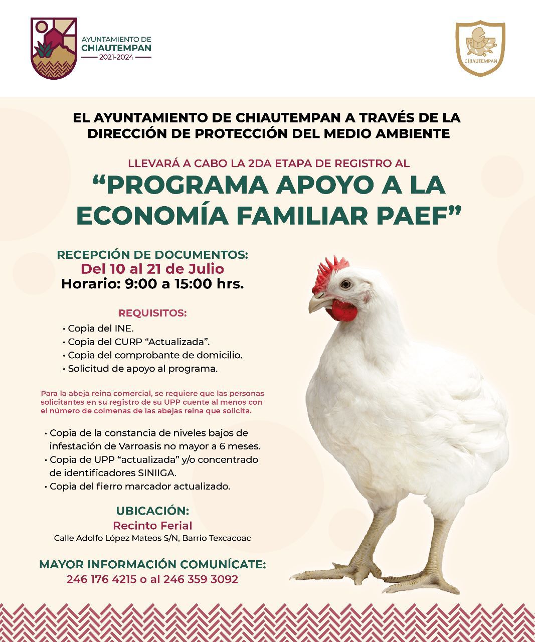 ABRE AYUNTAMIENTO DE CHIAUTEMPAN REGISTRO PARA PROGRAMA DE APOYO A LA ECONOMIA FAMILIAR