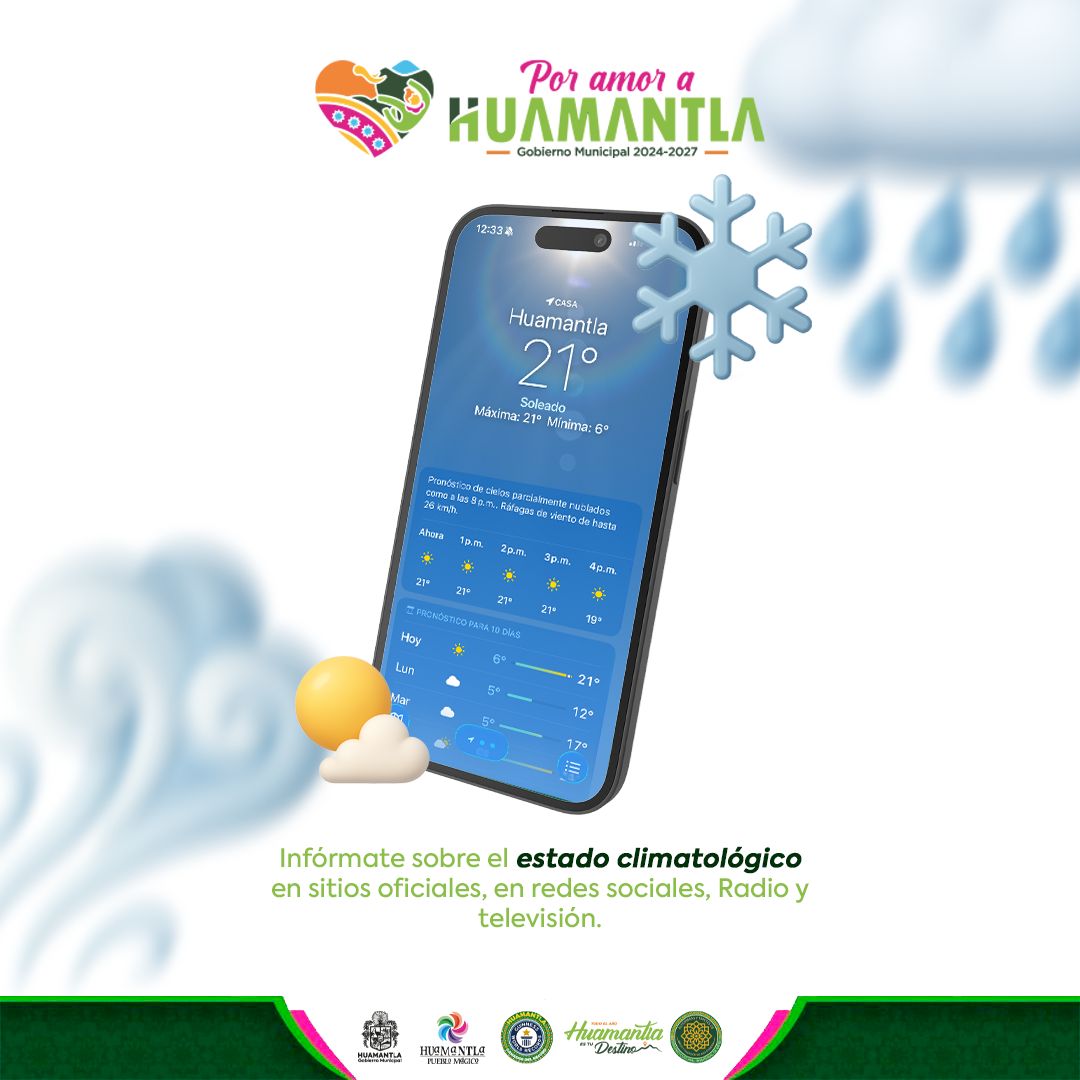 12 DE NOVIEMBRE 2025 Ayuntamiento de Huamantla llama a mantenerse informados y abrigados durante la temporada invernal Huamantla, Tlax., 11 de noviembre de 2025.– El H. Ayuntamiento de Huamantla exhorta a la ciudadanía a mantenerse atenta a los reportes meteorológicos y avisos oficiales que se emiten en las plataformas institucionales, ante el descenso de temperaturaSigue leyendo «AYUNTAMIENTO DE HUAMANTLA LLAMA A MANTENERSE INFORMADOS Y ABRIGADOS DURANTE TEMPORADA INVERNAL»