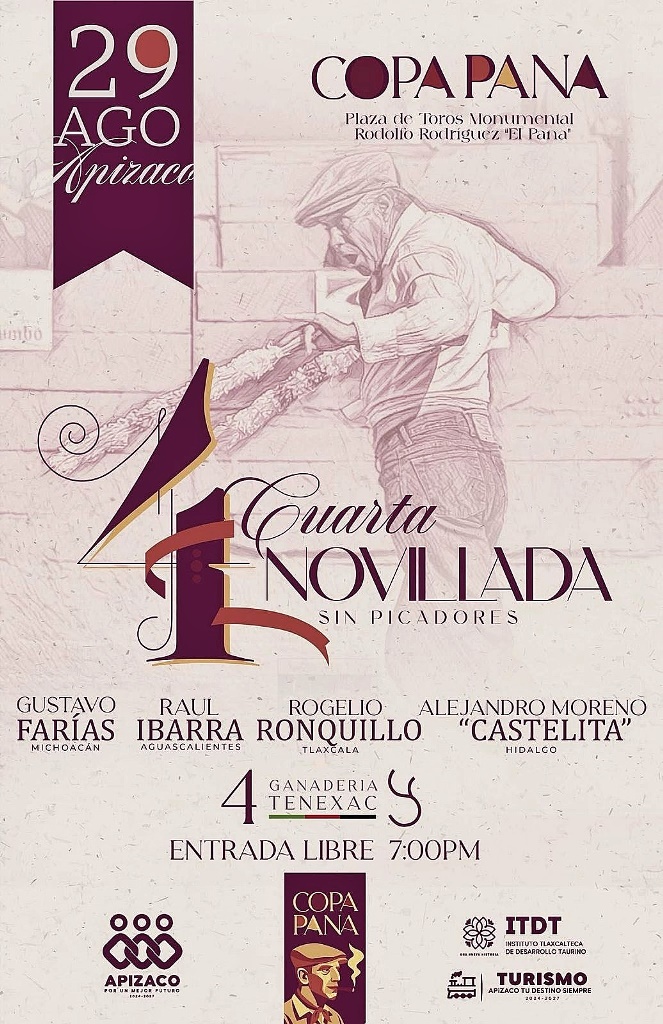 11 DE SEPTIEMBRE 2025 • En la entidad se ha registrado la llegada de gente de diferentes estados que vienen a disfrutar de este arte y que generan una derrama económica significativa: José Luis Angelino Al afirmar que Tlaxcala es un referente taurino, el titular del Instituto Tlaxcalteca de Desarrollo Taurino (ITDT), José Luis AngelinoSigue leyendo «TLAXCALA SE CONSOLIDA COMO REFERENTE TAURINO; EN SEPTIEMBRE SERÁ ESCENARIO DE LA COPA PANA»