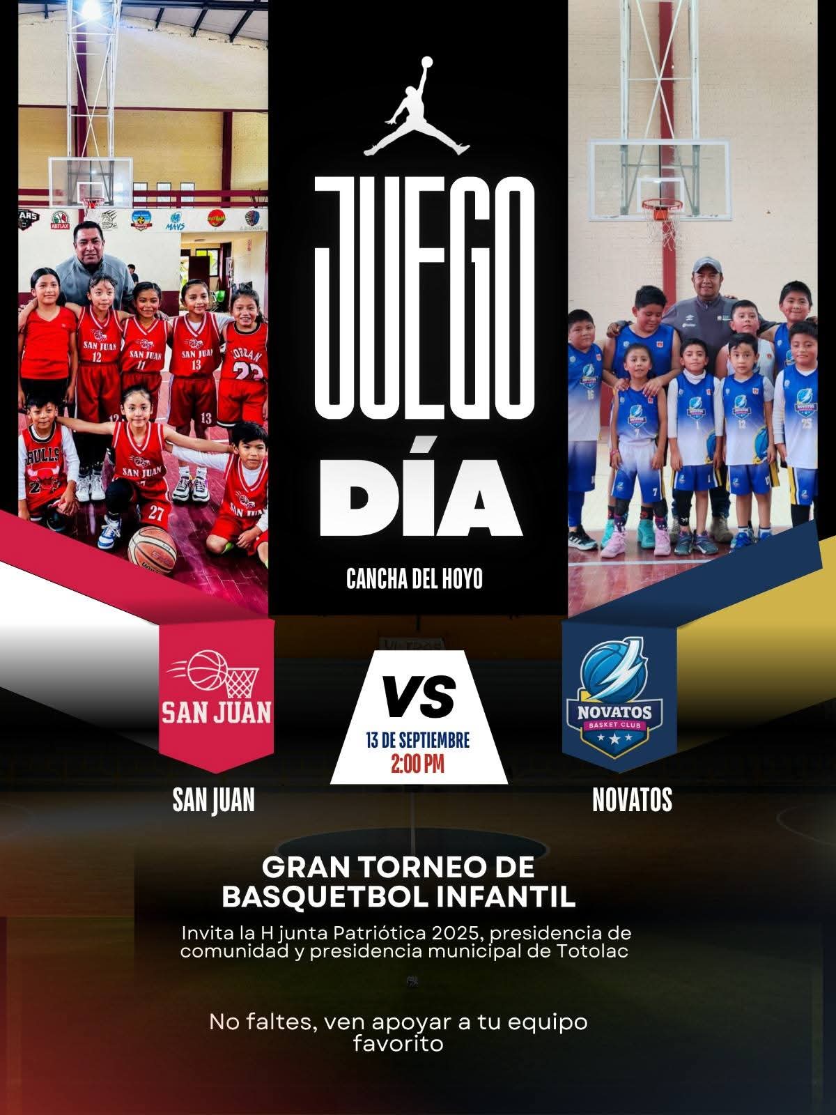 12 DE SEPTIEMBRE 2025 | La H. Junta Patriótica 2025 y el Gobierno Municipal de Totolac 24-27 te invitan a presenciar el torneo de básquetbol infantil. 📆 Sábado 13 de septiembre ¡Te esperamos, no faltes! Consulta la información completa en el banner 👇🏼 MunicipioConTradiciónYGrandeza PorAmorATotolac ElGobiernoDeLaGente ConstruyendoJuntos
