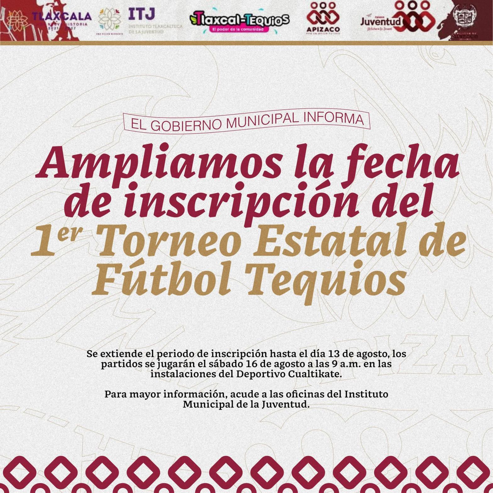 12 DE AGOSTO 2025 📣 ¡Atención jóvenes futbolistas! ⚽¡Tenemos excelentes noticias! 🔴 ¡Ampliamos la fecha de inscripción!Ya puedes inscribirte al 1er Torneo Estatal de Fútbol Tequios hasta el 13 de agosto.No te quedes fuera de esta gran experiencia deportiva que une talento y comunidad. 🙌 📅 Inicio de partidos:🗓️ 16 de agosto⏰ 9:00 a.m.📍 InstalacionesSigue leyendo «ATENCIÓN JÓVENES FUTBOLISTAS DE APIZACO»