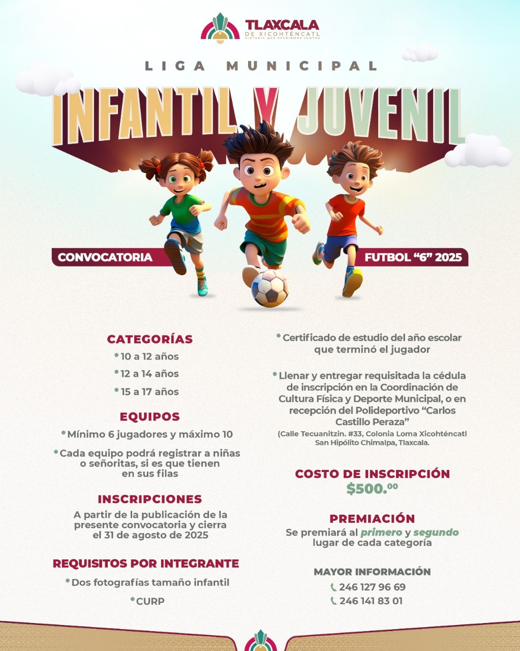 ABRE GOBIERNO MUNICIPAL DE TLAXCALA CONVOCATORIA PARA CREAR LA LIGA INFANTIL Y JUVENIL DE FUTBOL 6