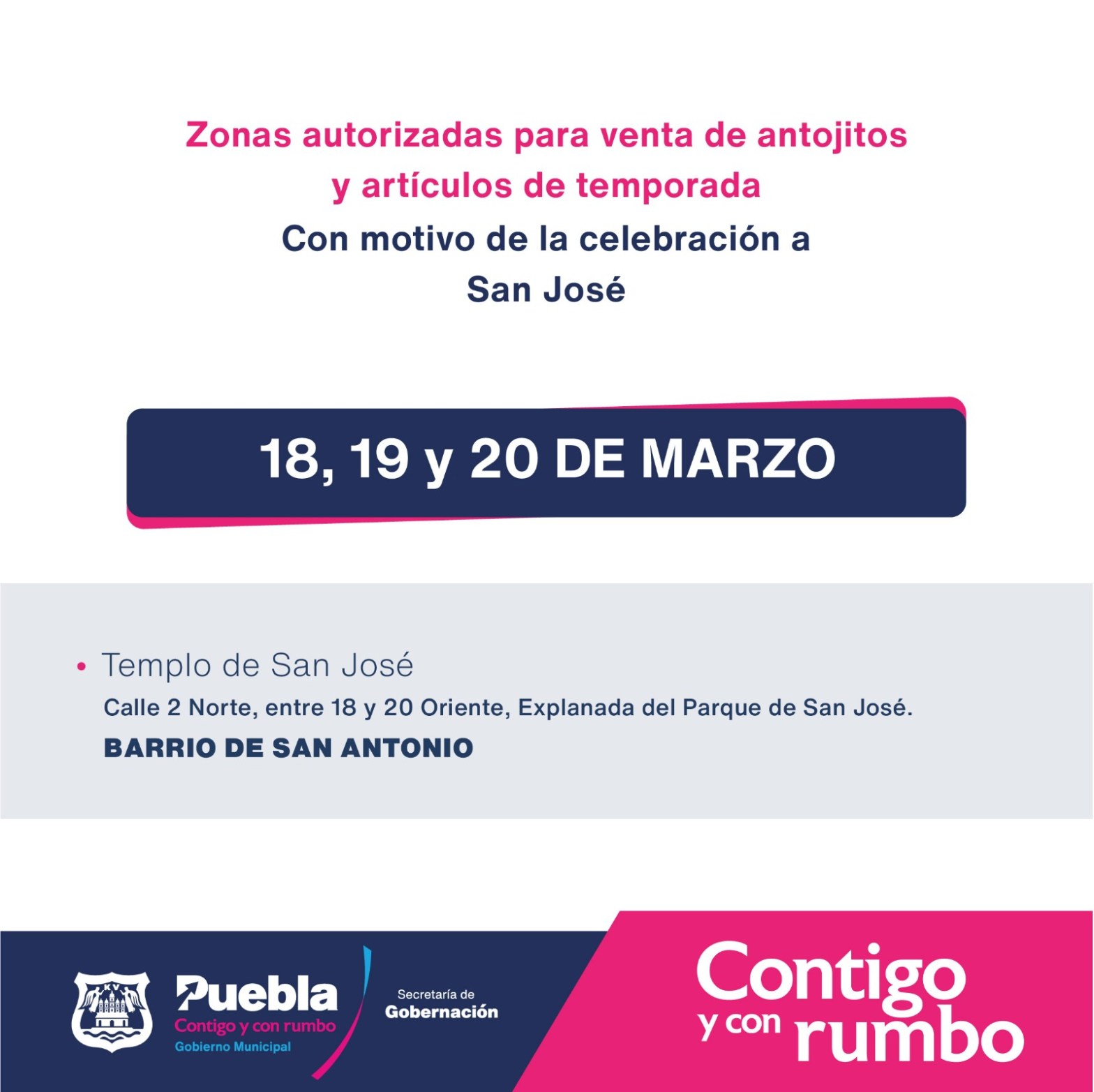 18 DE MARZO 2023 – Para salvaguardar a los asistentes se harán cierres de circulación en la zona . Por motivo de las celebraciones patronales que se realizarán este fin de semana, del 18 al 20 de marzo la Secretaría de Gobernación del Municipio de Puebla permitirá la venta de antojitos y artículos de temporadaSigue leyendo «POR FIESTA PATRONAL, HABRÁ VENTA DE ANTOJITOS EN SAN JOSÉ»