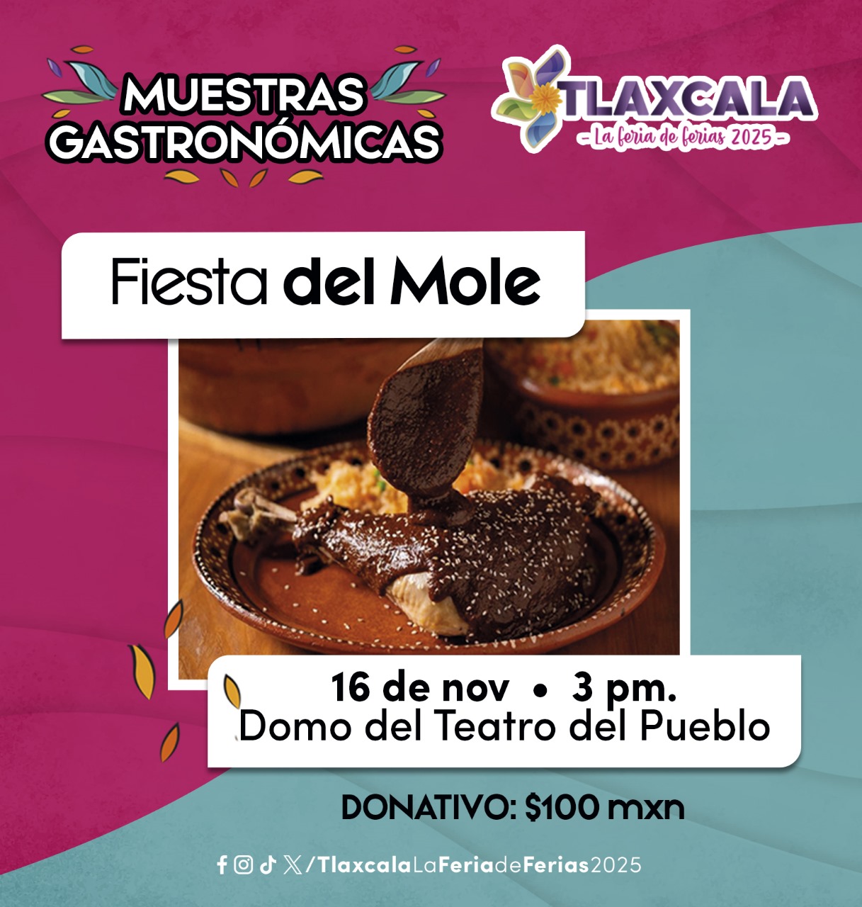7 DE NOVIEMBRE 2025 🎡 Te esperamos a la Fiesta del Mole en @Tlaxcala, la Feria de Ferias 2025.📅 16 de noviembre🕐 Acceso a partir de la 15:00 horas📍Domo del Teatro del Pueblo.Donativo $100 pesos / todo lo recaudado es para las cocineras tradicionales.⚛️ ¡Ven y vive cada momento en la feria que lo tieneSigue leyendo «FIESTA DEL MOLE EN FERIA TLAXCALA»