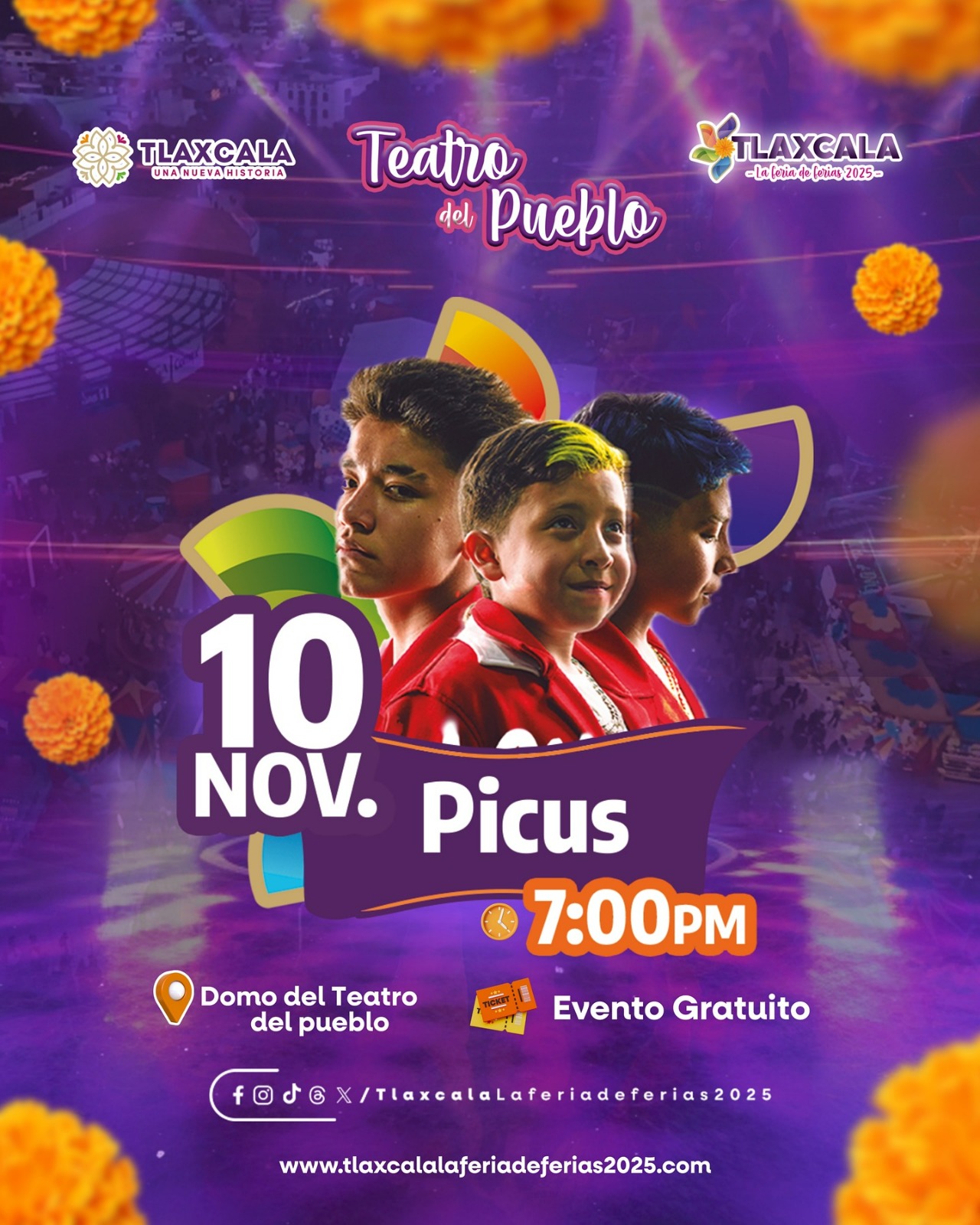9 DE NOVIEMBRE 2025 🎶 Nos vemos mañana para disfrutar de @Picus en @Tlaxcala la feria de ferias 2025. 🎢¡No puedes faltar! 📆 10 de noviembre.📍 Domo del Teatro del Pueblo.🎫 Evento totalmente gratuito 😱 Tlaxcalalaferiadeferias2025 FDF2025