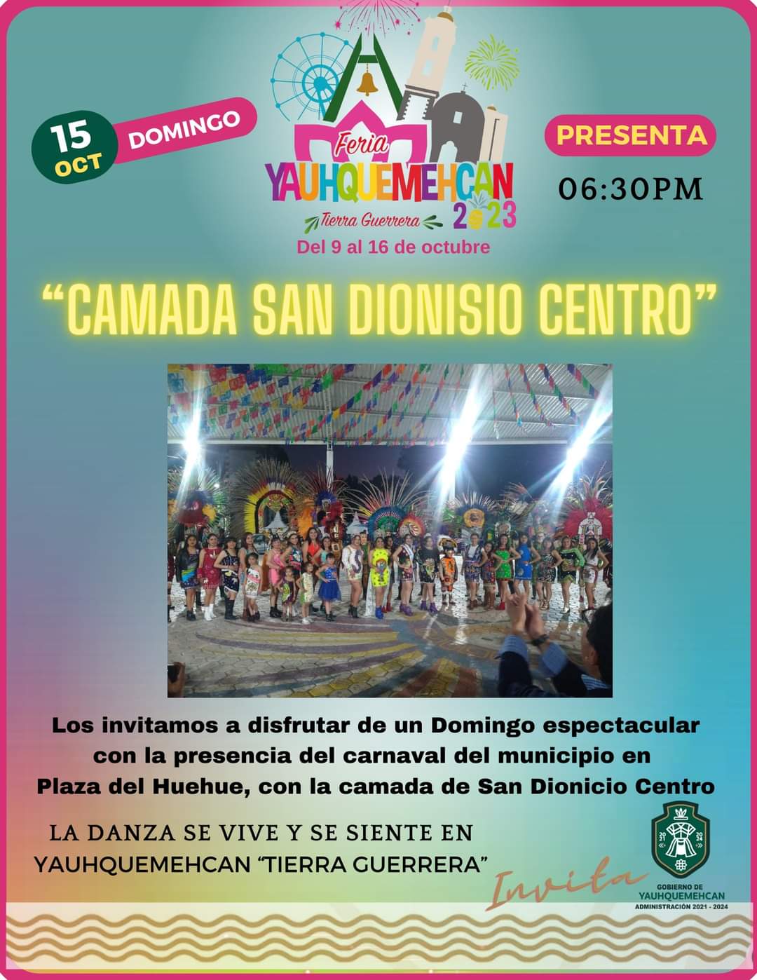 10 DE OCTUBRE 2023 «𝗣𝗿𝗲𝘀𝗲𝗻𝘁𝗮𝗰𝗶ó𝗻 𝗱𝗲 𝗹𝗮 𝗖𝗮𝗺𝗮𝗱𝗮 𝗦𝗮𝗻 𝗗𝗶𝗼𝗻𝗶s𝗶𝗼 𝗖𝗲𝗻𝘁𝗿𝗼 𝗙𝗲𝗿𝗶𝗮 𝗬𝗮𝘂𝗵𝗾𝘂𝗲𝗺𝗲𝗵𝗰𝗮𝗻» 𝗹𝗼𝘀 𝗶𝗻𝘃𝗶𝘁𝗮𝗺𝗼𝘀 𝗮 𝗱𝗶𝘀𝗳𝗿𝘂𝘁𝗮𝗿 𝗱𝗲 𝘂𝗻 𝗗𝗼𝗺𝗶𝗻𝗴𝗼 𝗲𝘀𝗽𝗲𝗰𝘁𝗮𝗰𝘂𝗹𝗮𝗿 𝗰𝗼𝗻 𝗹𝗮 𝗽𝗿𝗲𝘀𝗲𝗻𝗰𝗶𝗮 𝗱𝗲𝗹 𝗰𝗮𝗿𝗻𝗮𝘃𝗮𝗹 𝗱𝗲𝗹 𝗺𝘂𝗻𝗶𝗰𝗶𝗽𝗶𝗼 𝗲𝗻 𝗹𝗮 Feria Yauhquemehcan 2023𝗗𝗼𝗺𝗶𝗻𝗴𝗼 15 𝒅𝒆 𝒐𝒄𝒕𝒖𝒃𝒓𝒆 18:30 𝐩𝐦 𝗲𝗻 𝗣𝗹𝗮𝘇𝗮 𝗱𝗲𝗹 𝗛𝘂𝗲𝗵𝘂𝗲¡𝑳𝒐𝒔 𝒆𝒔𝒑𝒆𝒓𝒂𝒎𝒐𝒔! #𝐓𝐢𝐞𝐫𝐫𝐚𝐆𝐮𝐞𝐫𝐫𝐞𝐫𝐚 𝐋𝐚𝐅𝐞𝐫𝐢𝐚𝐃𝐞𝐓𝐨𝐝𝐨𝐬 .