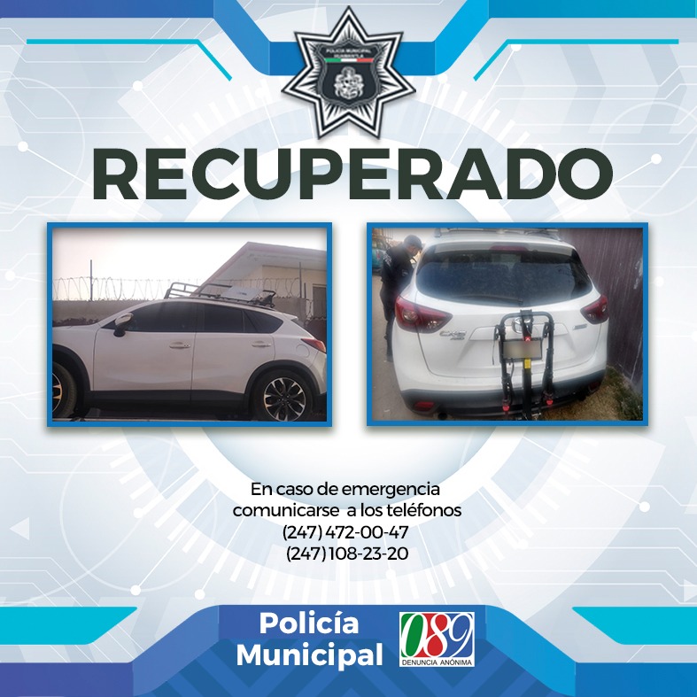 La rápida respuesta, más el trabajo de vigilancia y coordinación de la Dirección de Seguridad Pública, Tránsito y Protección Civil de Huamantla con las corporaciones de seguridad de los municipios vecinos, permitieron la recuperación de una camioneta con reporte de robo en una privada de la calle Miguel Hidalgo en San Francisco Yancuitlalpan. La camioneta marcaSigue leyendo «RECUPERA DIRECCIÓN DE SEGURIDAD PÚBLICA DE HUAMANTLA CAMIONETA CON REPORTE DE ROBO»