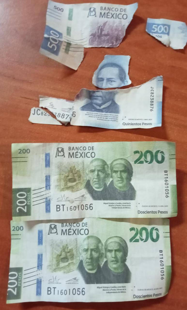 DETUVO LA SSC A DOS PERSONAS QUE INTENTABAN PAGAR CON BILLETES FALSOS EN IXTENCO